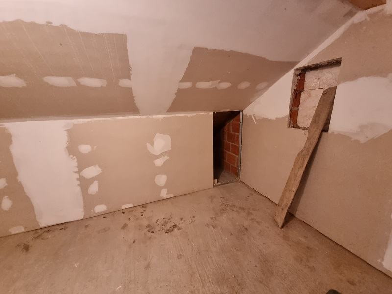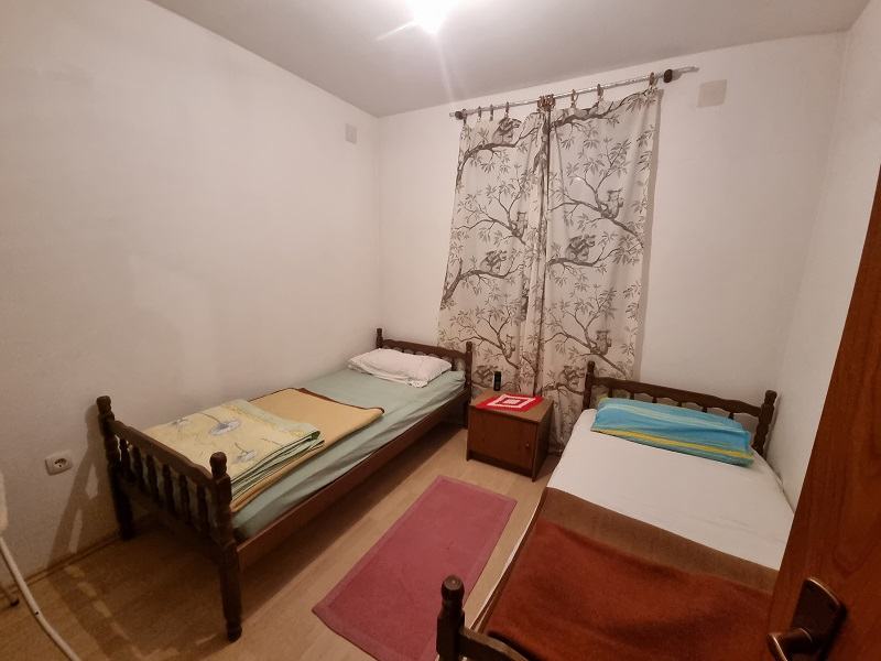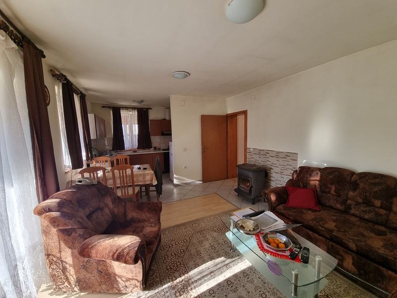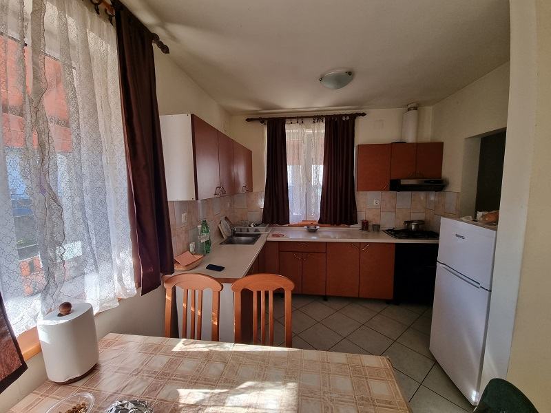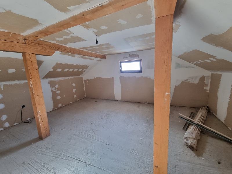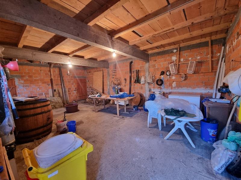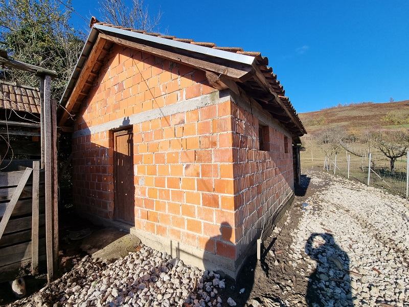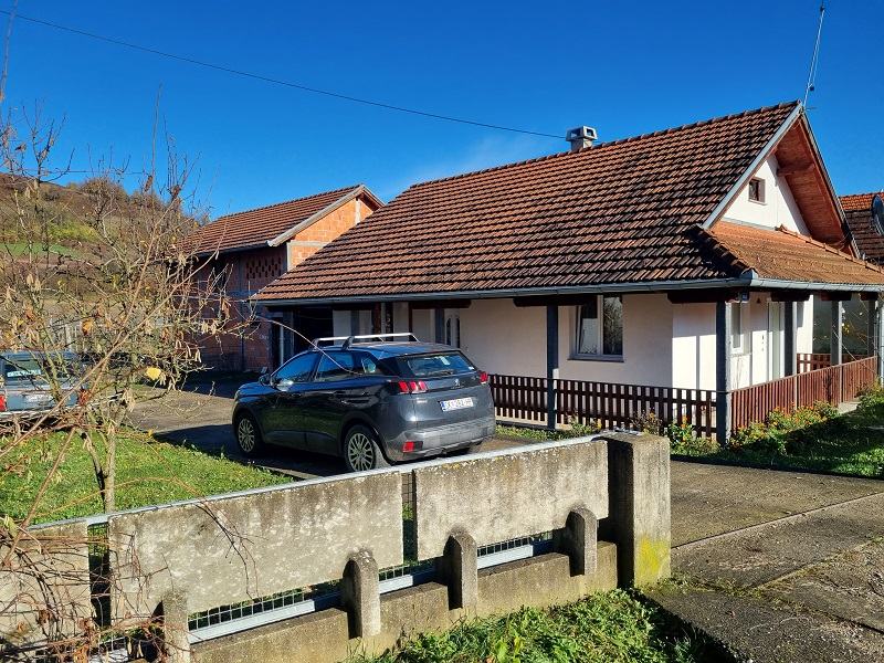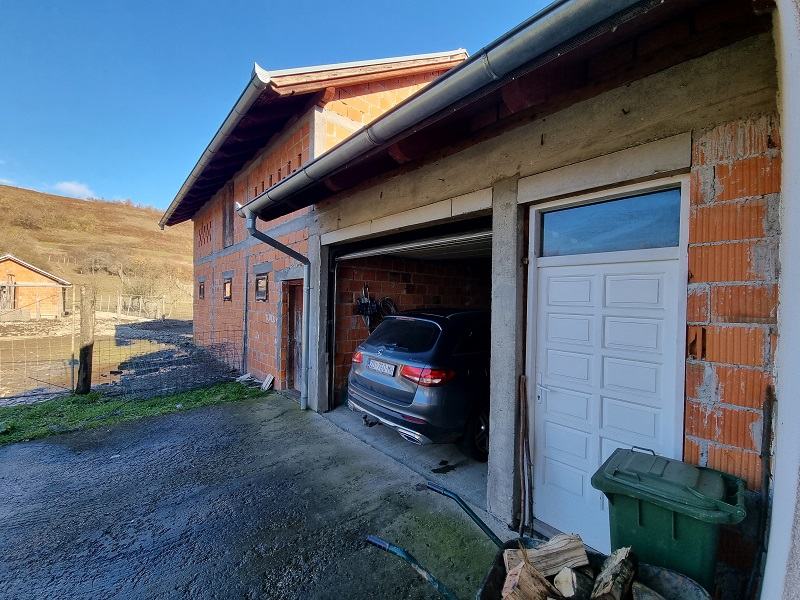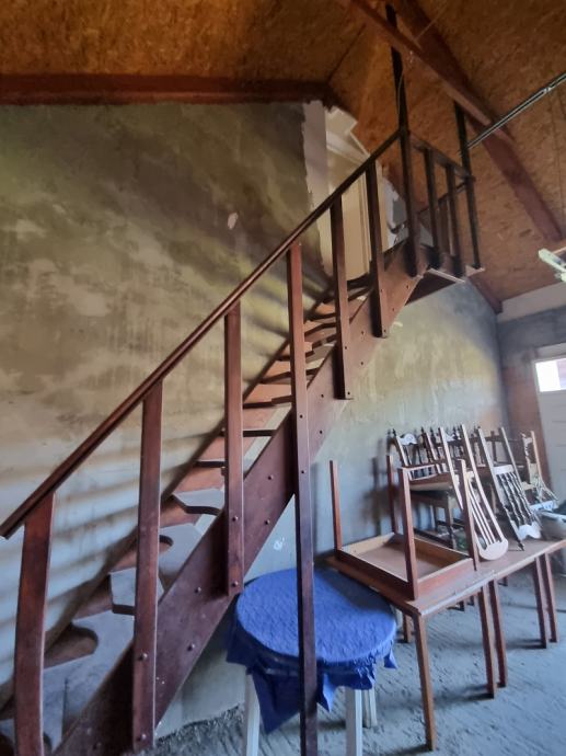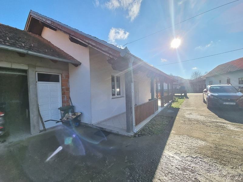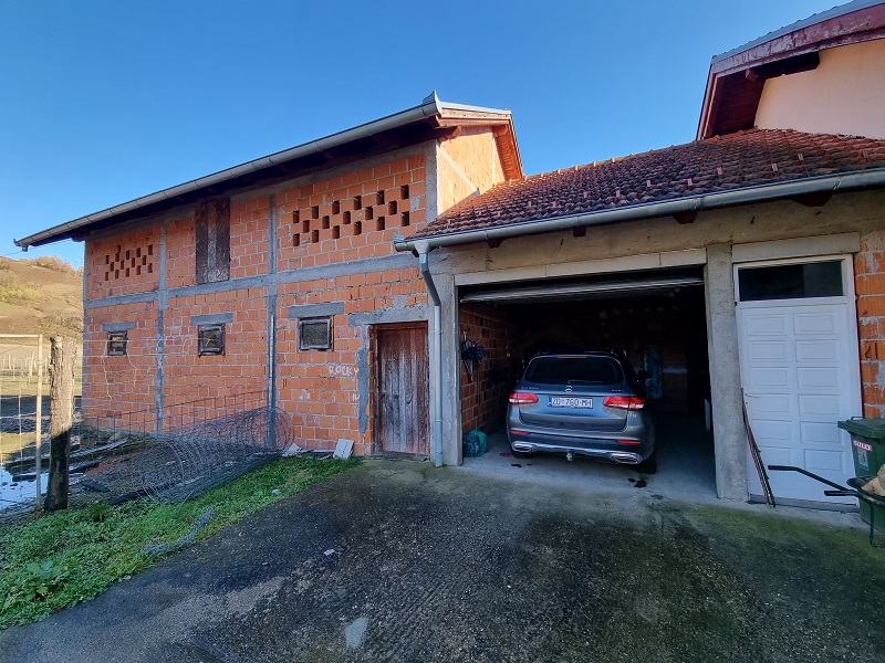 Kuća se sastoji od 3 sobe,kuhinje,kupaonice+wc-a,terase,nedovršenih prostorija u potkrovlju i garae u dvorišnoj zgradi.