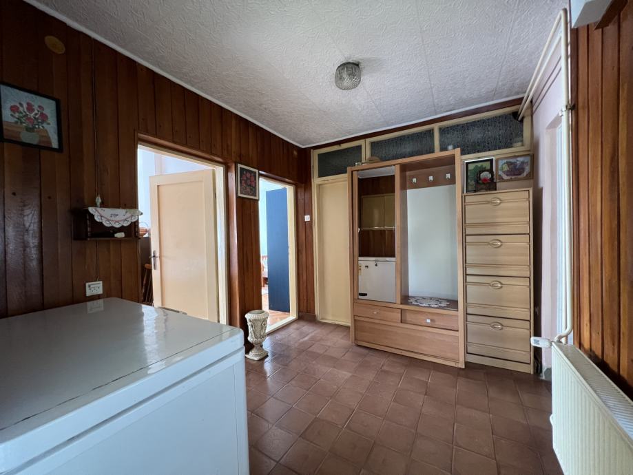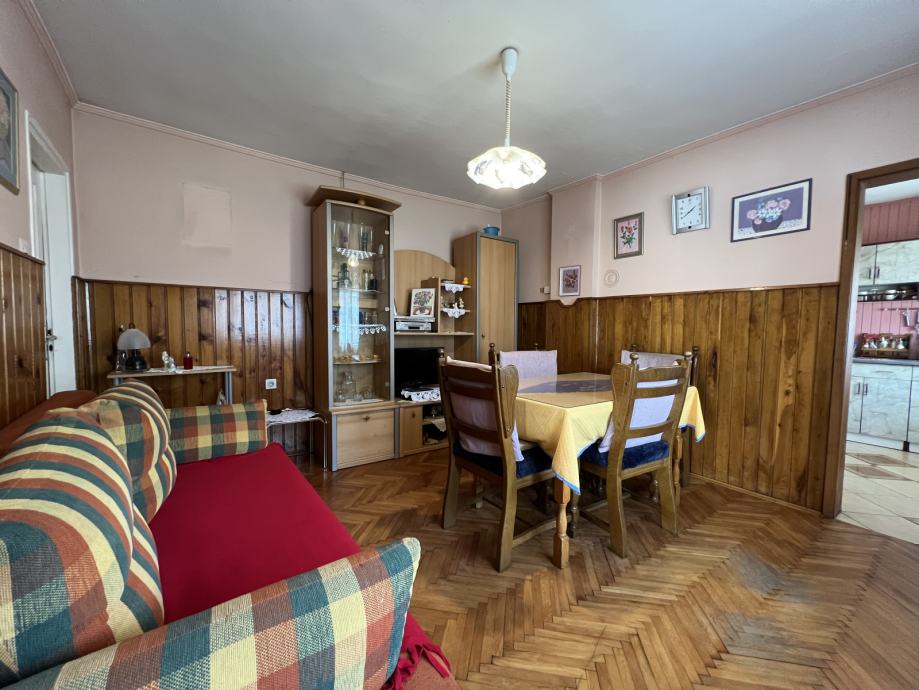 Stambeni dio sastoji se od ulaza, centralnog prostora iz kojeg se ulazi u 2 prostrane sobe, spremište i dnevni boravak te kuhinje, kupaonice i ostave. Prostorije su velike i svijetle, a unutarnji raspored pruža i dodatne mogućnosti za prenamjenu i modernizaciju prostora. Kuća ima i podrum koji se proteže pod dijelom kuće te veliki tavanski prostor dok stražnje pomoćne prostorije omogućuju i dodatno proširenje stambenog prostora.