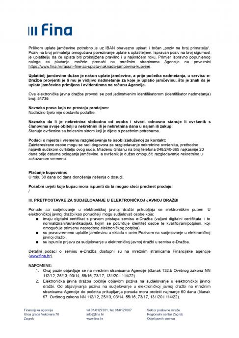 Druga elektronička javna dražba počinje 13.02.2025.g. u 15:00:00 sati.