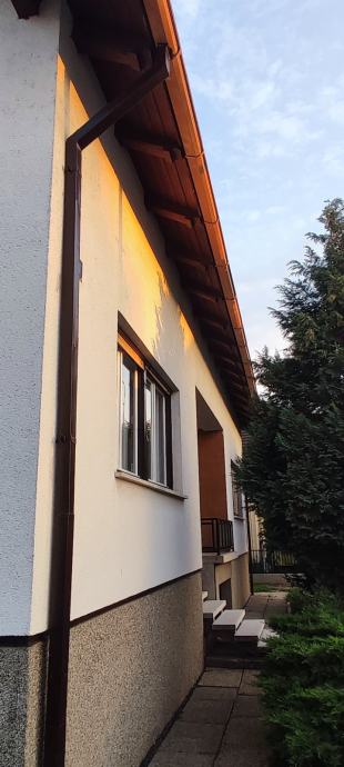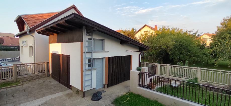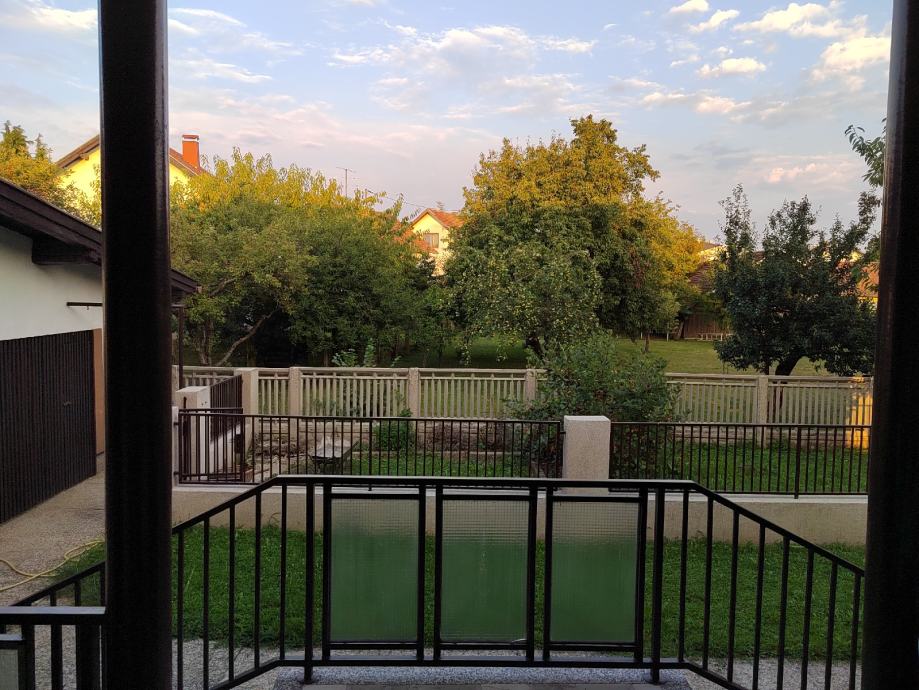 Kuća ima prednju natkrivenu terasu koja gleda na ulicu i stražnju natkrivenu terasu koja gleda na vrt te 2 balkona na oba kata. U sklopu stražnje terase nalazi se prostorija pogodna za pranje rublja i slično.