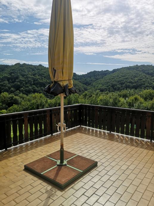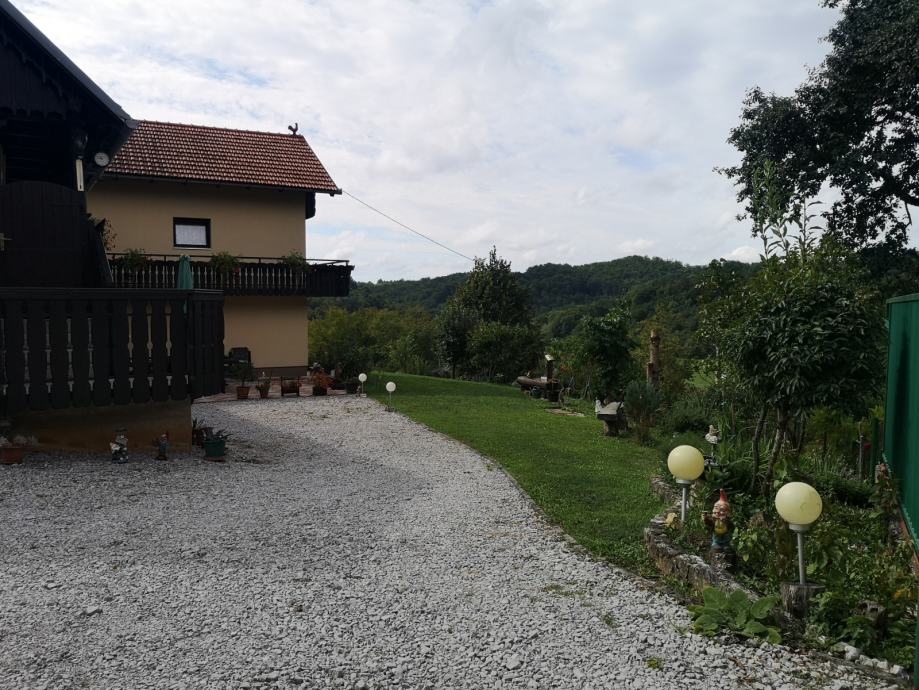 Zemljište oko kuće je terasasto uređeno s vlastitim vrtom, voćnjakom, kompletno je ograđeno sa svih strana postoji prekrasan pogled na okolno gorje, mir, tišina-kuća je zadnja u selu, bez direktnih susjeda.