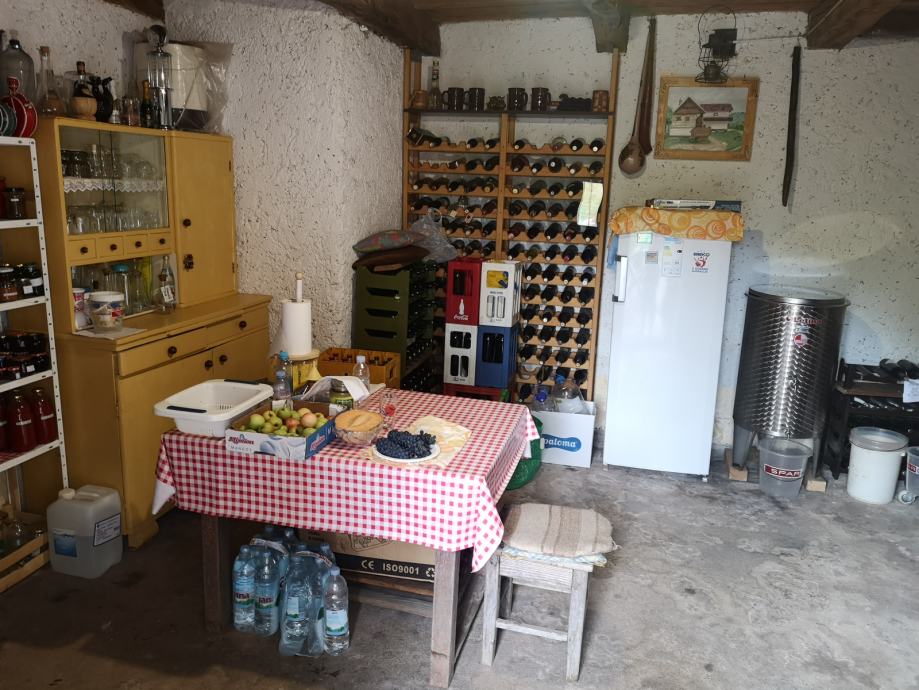 Starija kuća je kameno drvena, u prizemlju: spremište, ljetna kuhinja u punoj funkciji i vinski podrum.