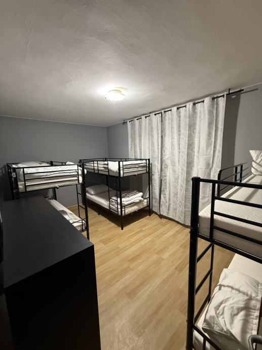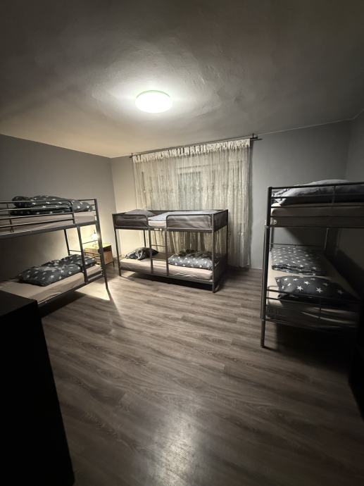 Iznajmljuje se KUĆA za radnike, kapaciteta za 20 osoba, korištenje kompletne kuhinje sa blagovaonicom, kupaone sa kadom i tuš kadom i wc-om na katu, te kupaone sa 4 wc-a, 4 tuš kade i 3 umivaonika u prizemlju. Mogućnost parkiranja više automobila radi velikog dvorišta.