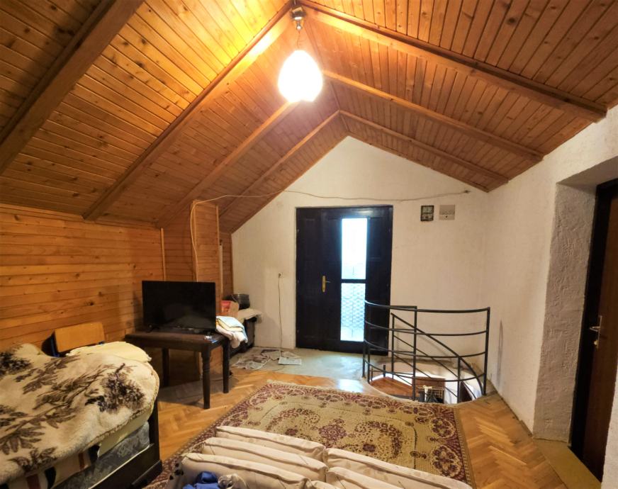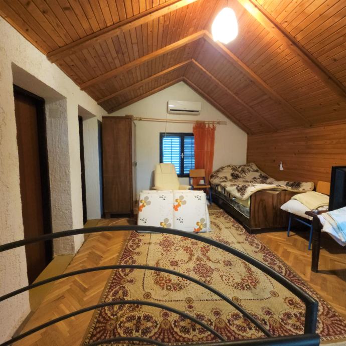 Ova nekretnina je pravo malo blago - sastoji se od dvije etaže, potkrovlja i posebnog podruma s vlastitim ulazom. U prizemlju vas očekuje prostrana kuhinja s blagovaonicom, udoban dnevni boravak te kupaonica s toaletom. Na katu se nalaze tri odvojene spavaće sobe, pružajući vam dovoljno prostora za udoban san i opuštanje. Potkrovlje je idealno za spremište, a ima i zaseban ulaz za vašu praktičnost.