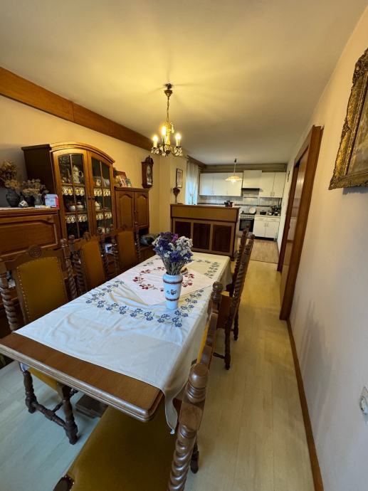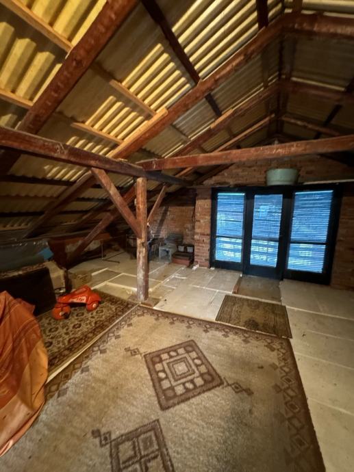Na prodaju je kuća koja se sastoji od ulaza, kuhinja sa blagovaonicom, dnevni boravak, kotlovnica. Na katu se nalaze 3 sobe kupaonica, ostava. Na tavanu mogućnost prenamjene u stambeni prostor. Uz kuću ne nalazi garaža i natkriveni parking.