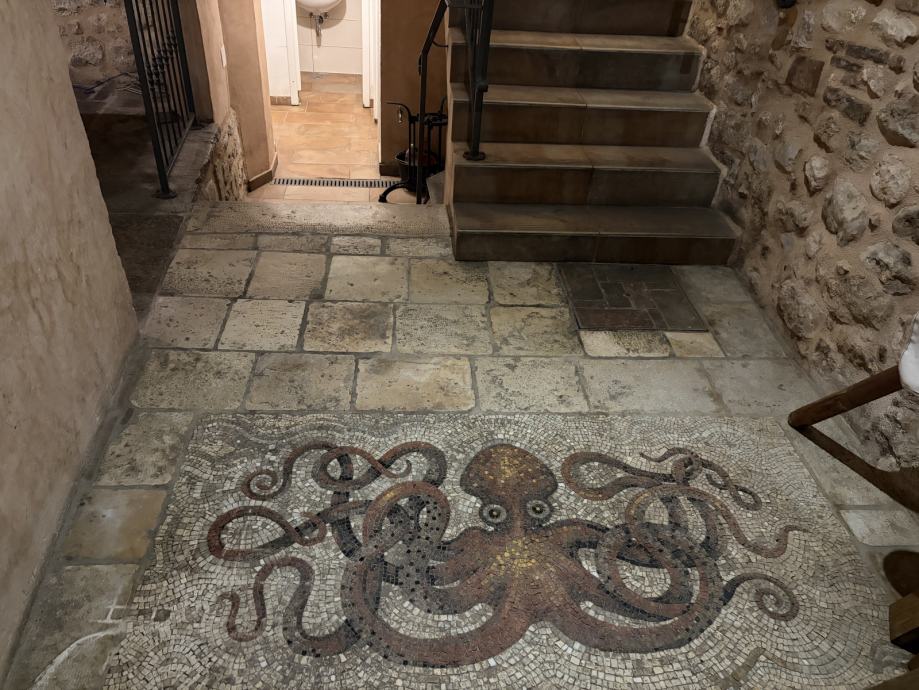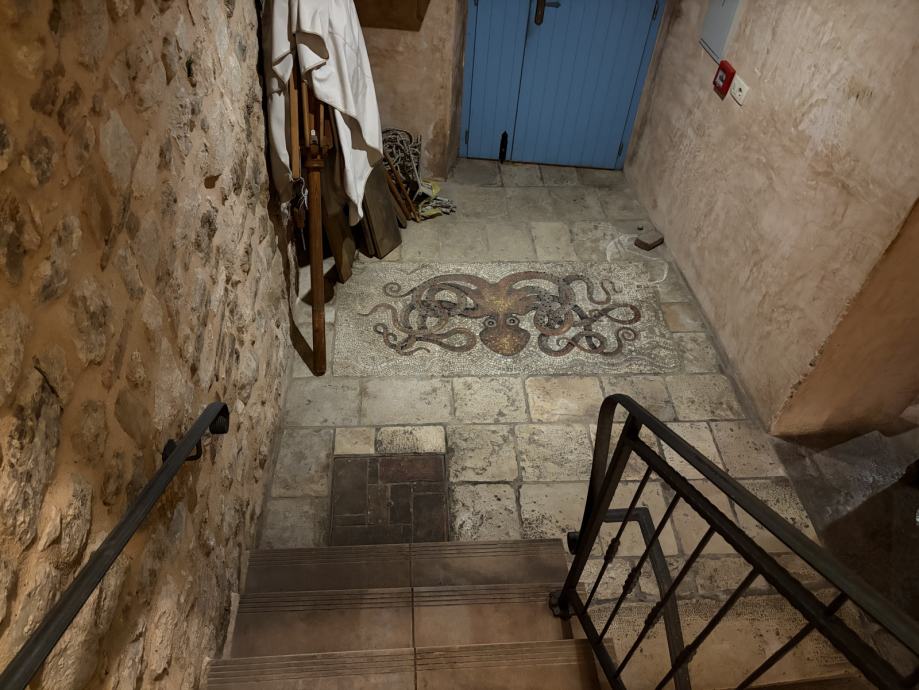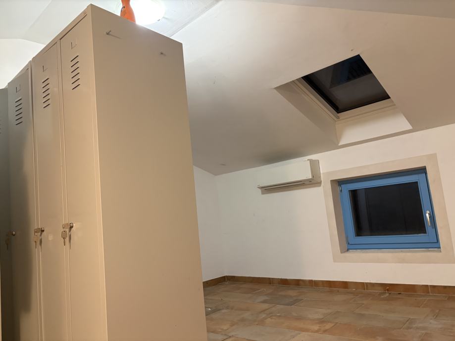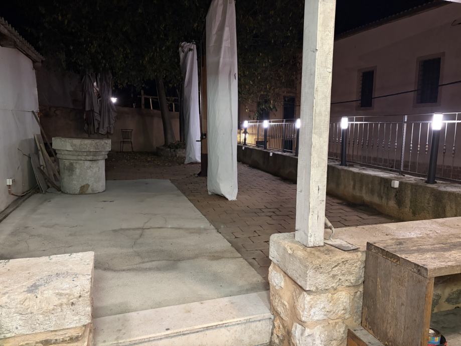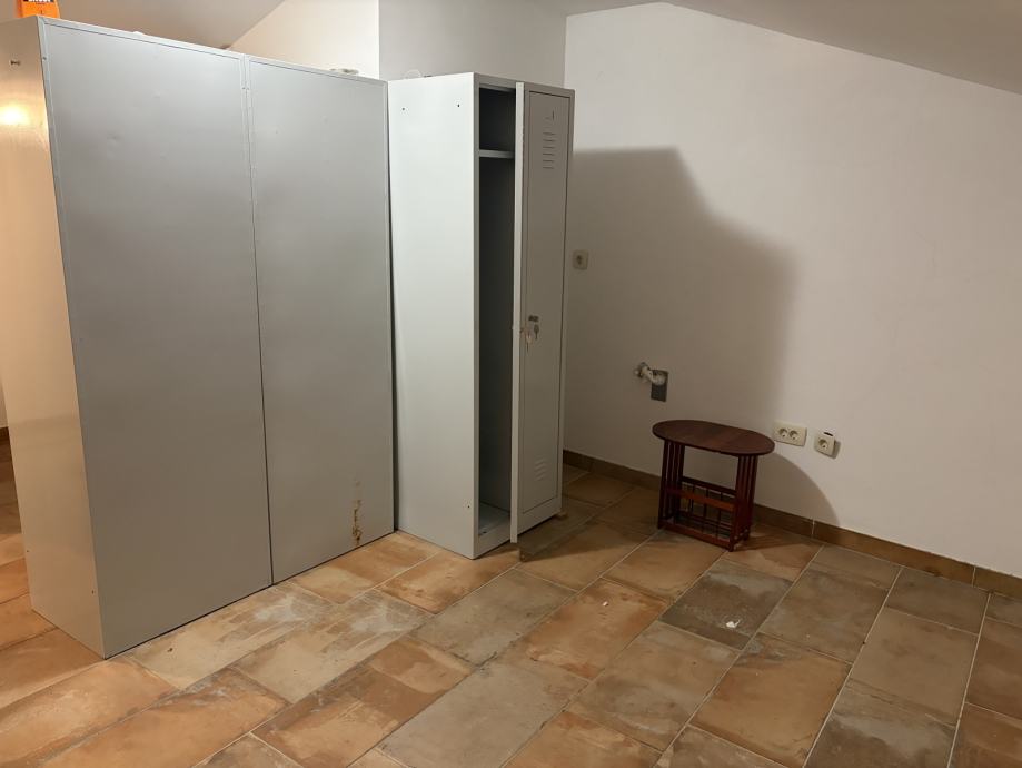Na katu objekta smještena je potpuno opremljena profesionalna kuhinja s postojećom ugostiteljskom opremom, kao i svlačionice za osoblje. Na istoj etaži nalazi se i prekrasna otvorena terasa s koje se pruža pogled na krovove staroga grada i obližnju crkvu, pružajući gostima jedinstveni mediteranski ugođaj.