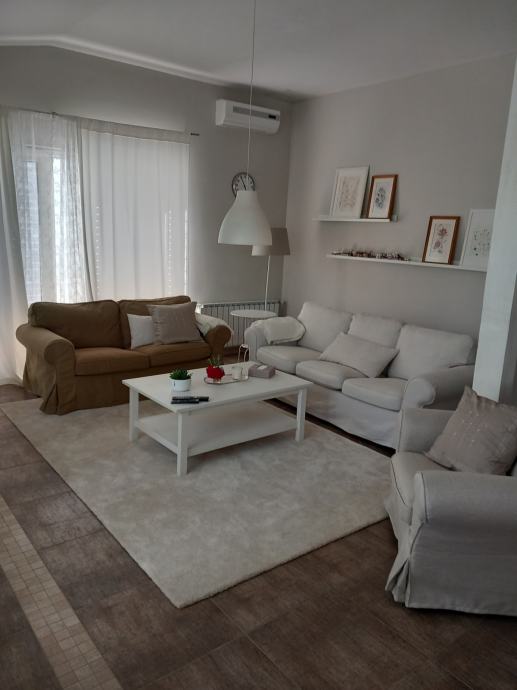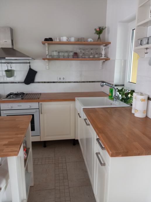 Prodaje se samostojeća kuća s većim dvorištem, malim vinogradom i voćnjakom u Krušljevom Selu. Na parceli je i vrtna kućica s nadstrešnicom za obiteljska druženja i vinskim podrumom. Nalazi se na blagoj uzvisini udaljena od susjednih kuća i ima nesmetan pogled na sve strane. Ugodna je za obiteljski život i pruža razne mogućnosti. Kuća je izgrađena na 3 poluetaže prateći blagi nagib parcele. Suteren se sastoji od garaže, kotlovnice, WC-a, SPA s jacuzzijem i saunom koji imaju izlaz u vrt te tušem i spremištem. U prizemlju od cca 60 m2 nalazi se kuhinja s blagovaonom i dnevni boravak - open space, Na pola etaže podignutom katu su 3 spavaće sobe (mogućnost i četvrte, svaka sa izlazom na balkon) i 2 kupaonice. Kuća je grijana radijatorskim grijanjem dok donje dvije poluetaže imaju i podno grijanje. Topla voda grije se i solarima smještenima na krovu.