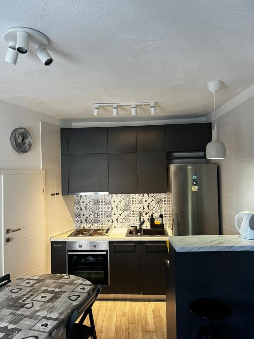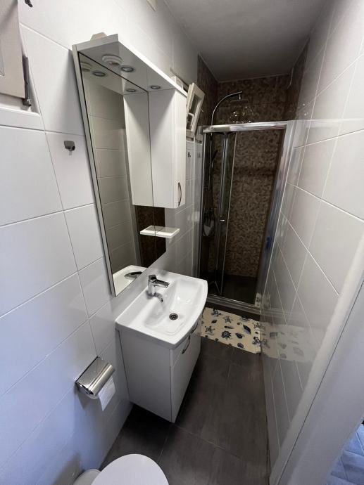 The house has two separate entrances on two floors, each of which is 40m2. Each floor represents a separate residential unit and is therefore suitable for accommodation of up to 8 people (4 people per floor). Each floor has a separate bathroom with toilet, equipped kitchen, electric boiler and air conditioners.