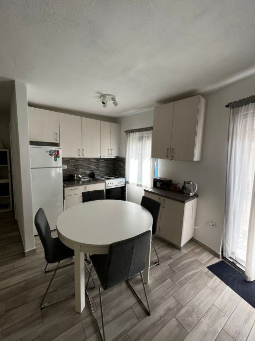 Kuća ima dva odvojena ulaza na dvije etaže od kojih svaka ima 40m2. Svaka etaža predstavlja posebnu stambenu jedinicu i stoga je pogodna za smještaj do 8 osoba (4 osobe po etaži). Svaka etaža ima odvojenu kupaonicu sa sanitarnim čvorom, opremljenom kuhinjom, električni bojlerom i klima uređajem.