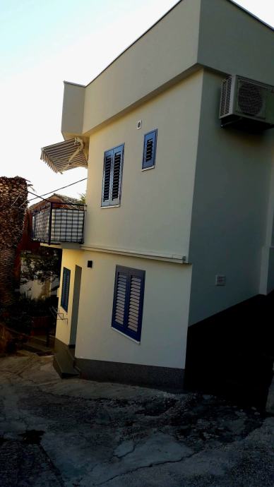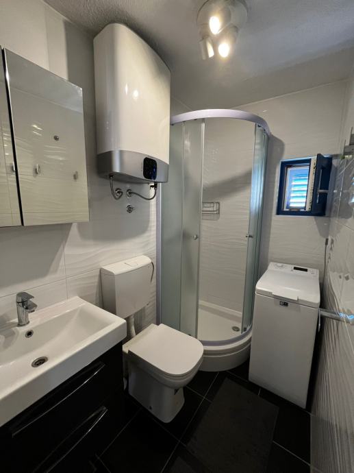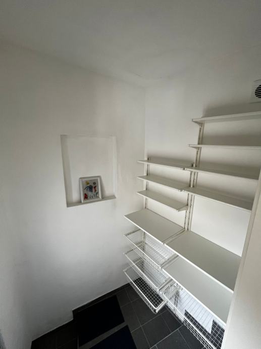 The house was completely renovated in 2019 exclusively for the owner's vacation. Therefore, renovation and furnishing was solid using just high quality materials and equipment. The roof (tile) was replaced, a new thermal fasade was installed, and high-quality external entrance doors and dark blue plastic windows, aluminum shutters in the same shade of color. All installations were changed: electricity, water, sewage. New high-quality ceramic tile floors were installed in all rooms, new tile ceramics around the entrance, on the staircase and on the terrace. New interior joinery was installed. Bathrooms have been newly furnished, new kitchens and built-in wardrobes have been made to measure. New boilers were installed, new furniture, appliances and air conditioners were bought, etc. A small room on the ground floor was added, which is used as a pantry.