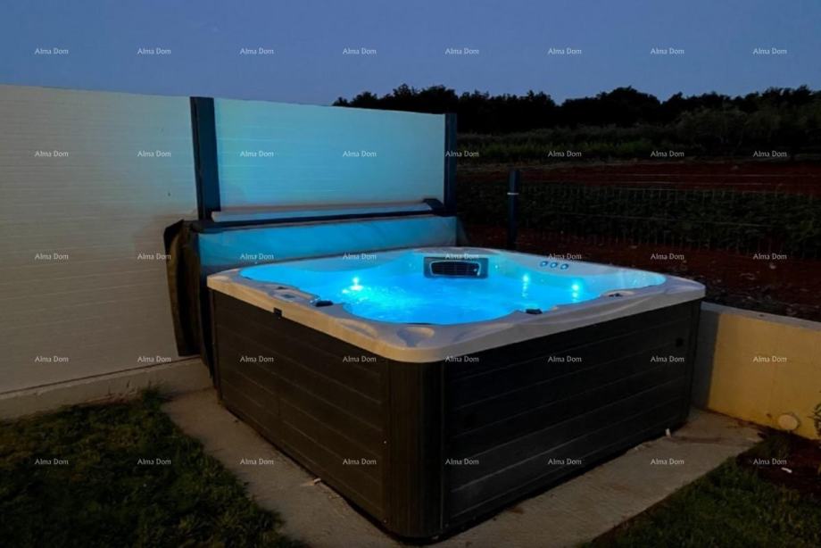 Prodajemo prekrasnu novogradnju sa šest spavaćih soba , četiri kupaonice (1 kada, 3 tuš kabine), kuhinjom sa blagovaonicom za dvanaest osoba, velikim dnevnim boravkom. Kuća ima veliku okućnicu sa grijanim bazenom veličine 26,5 m2 sa slapom i masažnim pumpama, jacuzzi, sauna, dječje igralište, trampolin, roštilj....kuća se iznajmljuje u turističke svrhe i opremljena je sa svim potrebnim sadržajima, te se kao takva i prodaje. Grijanje/hlađenje na dizalice topline. Sve prostorije su klimatizirane. Kvalitetna gradnja i unutarnje uređenje, mirna lokacija idealna za savršeni odmor.