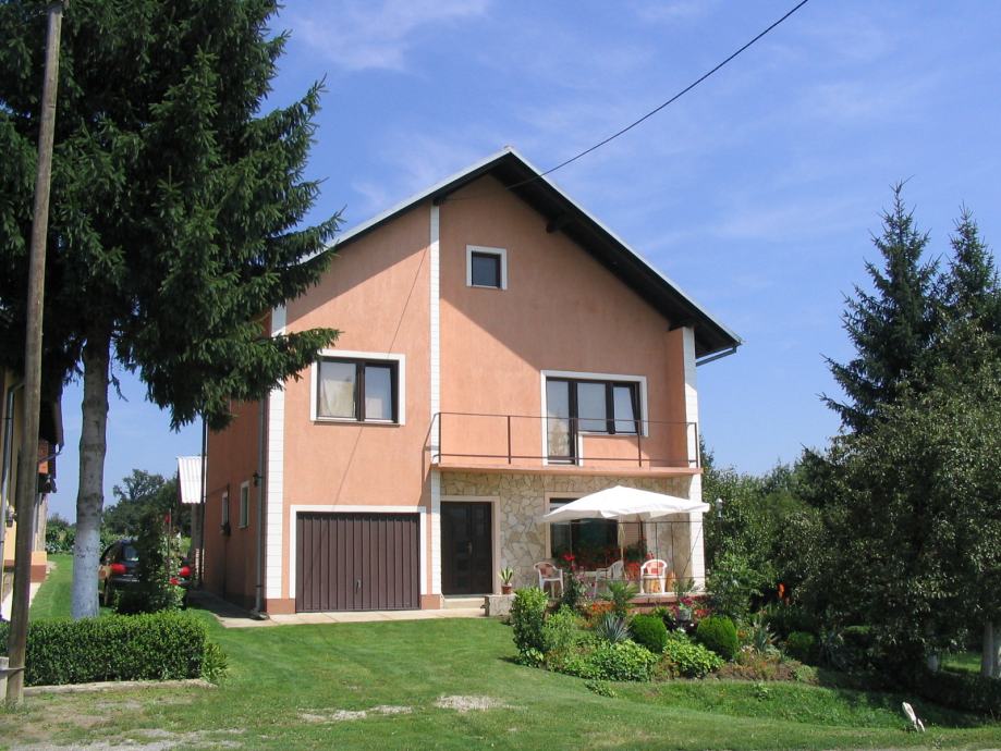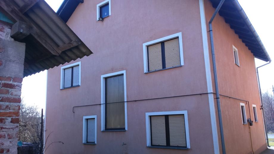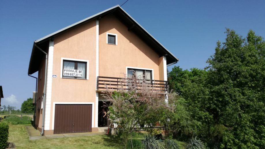 Prizemlje: veliki hodnik, kupaona i wc, manja soba, velika dnevna soba sa kuhinjom, manji podrum ispod hrastovih stepenica, koje vode na 1.kat. Garaža u sklopu kuće.