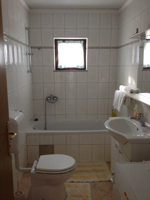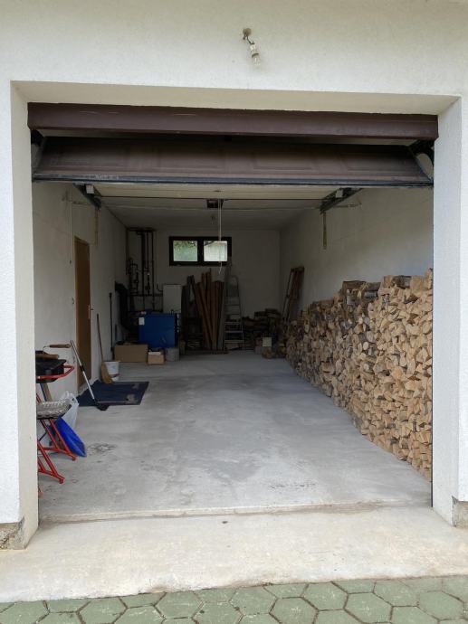 Prizemlje- velika garaža s kotlovnicom (garažna vrata s el. motorom), hodnik, apartman s kupatilom i soba,