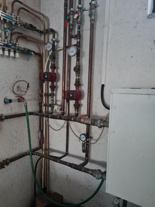 U kuću je uvedeno centralno grijanje (podno grijanje + radijatori) s mogućnosti odabira korištenja peći na kruto gorivo ili na električnu energiju.