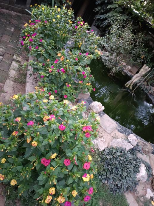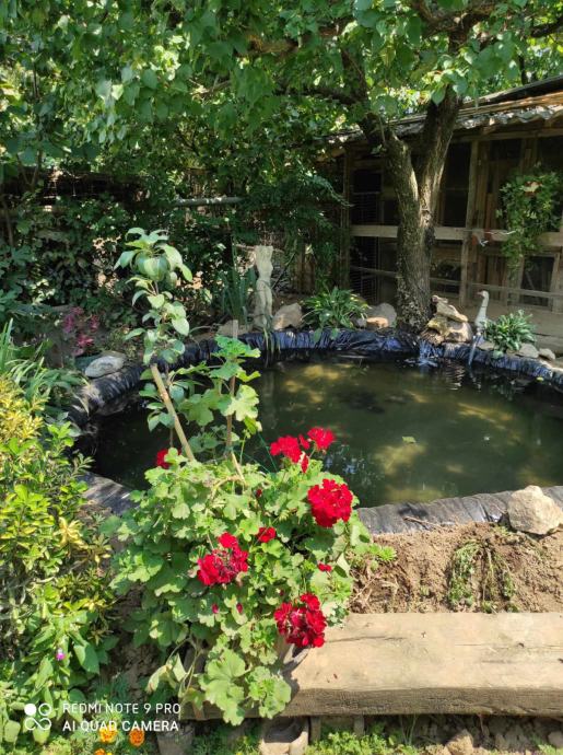 Oko kuće je ugodno okruženje puno zelenila i cvijeća. Okućnica je ograđena i uređena, sa vrtnim jezercem i voćnjakom u donjem dijelu.