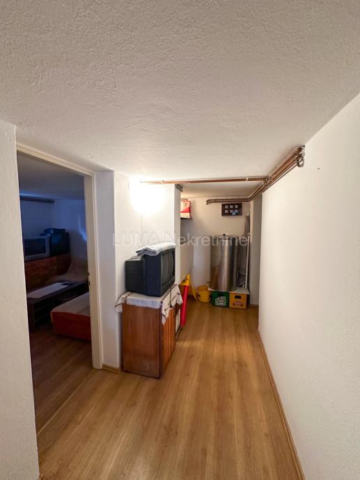 Podrum - 2 soban stan: ulazni hodnik s kuhinjom, sanitarni čvor s tuš kabinom, hodnik te dvije sobe.