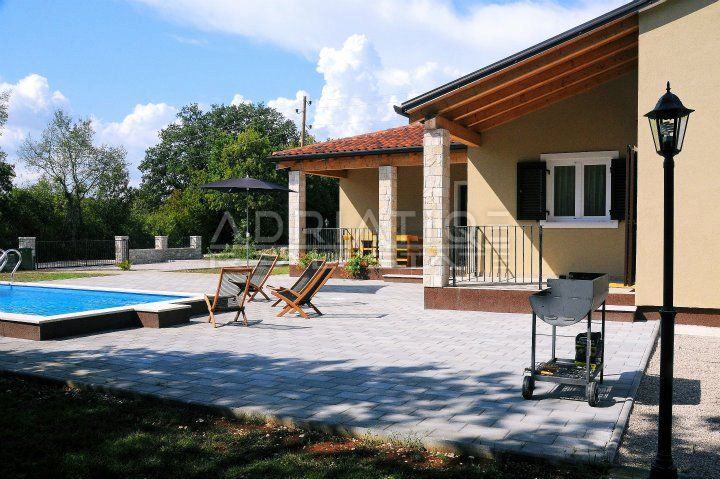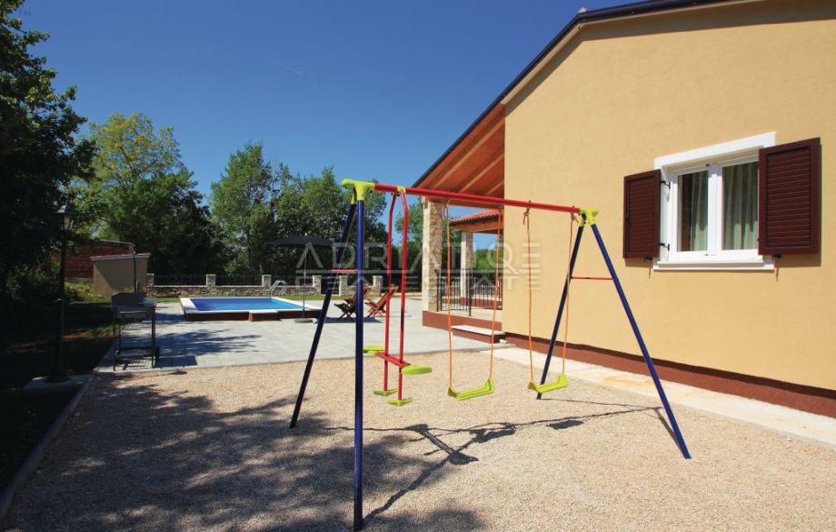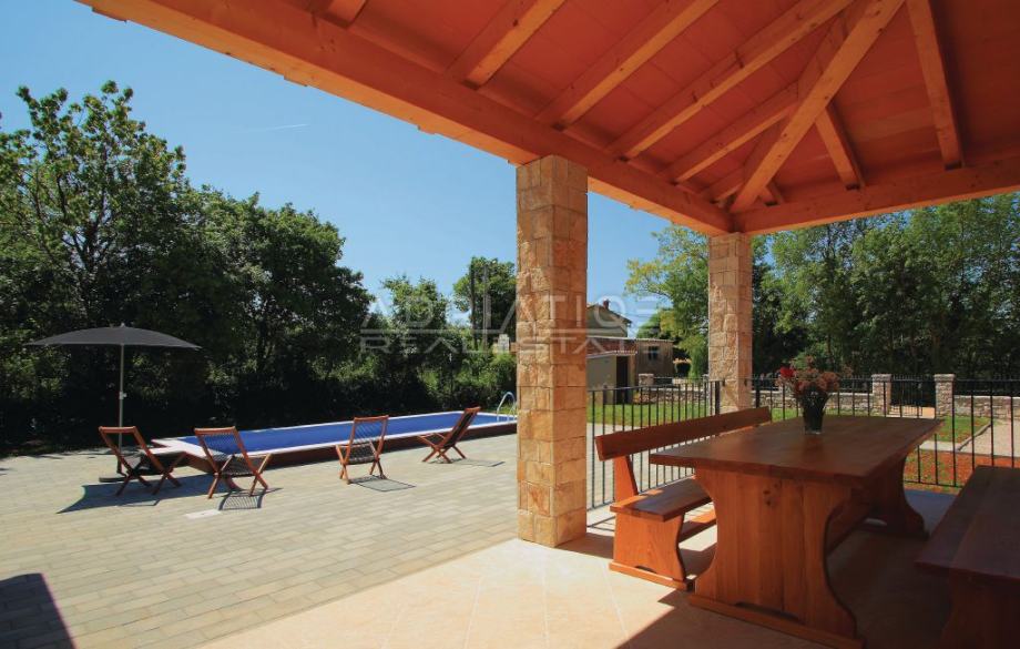 Prodajemo kuću za odmor u okolici grada Labina i turstičkog resorta Rapca. Kuća ima površinu od 170 četvornih metara, a građena je na zemljištu površine 1226 četvornih metara te se u ograđenom dvorištu nalazi bazen, dječije igralište te grill zona. Kuća se sastoji od spremišta, dnevnog boravka s blagovaonicom i kuhinjom s izlazom na terasu, tri spavaće sobe, dvije kupaonice, dvije natkrivene terase sa kojih se pruža otvoreni pogled na bazen te u prostoriji s zasebnim ulazom nalazi se fitness. Kuća je namjenjena turističkoj renti i sezonskoj upotrebi. Prilagođena je kako bi svojim gostima pružala potpuni konfor i ugođaj boravka.