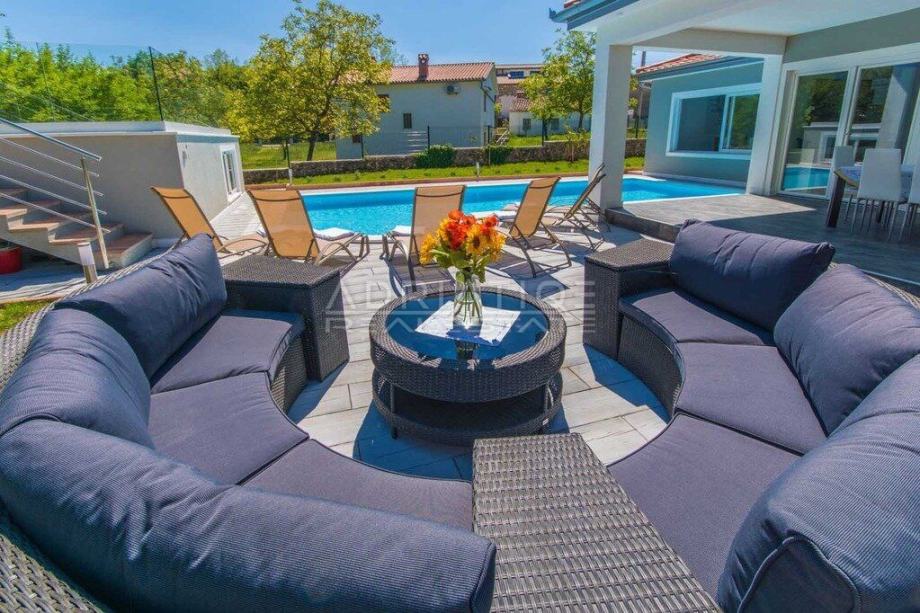 Prodajemo novosagrađenu villu za odmor s bazenom u okolici Labina na istočnoj obali Istre. Villa se nalazi u naselju svega 10 km udaljena od grada Labina i 15 km do naj poznatijeg tursitičkog resorta Istočne Istre, Rapca. Sagrađena je na parceli od 1109m2 a uz Villu se nalazi veliki bazen, ljetna kuhinja i sunčalište. U stražnjem djelu je predviđeno dječije igralište a uređeni parking na ulazu će biti natkriven. Villa ima ukupno 4 prostrane spavaće sobe s kupaonama d kojih se dvije nalze u prizemlju i dvije na prvome katu. Dnevni prostori su velikih kvadratura s velikim otvorima što villi daje puno dnevnog svjetla i maksimalnu komociju. Postavljeno je grijanje pomoću dizalice topline te solarni paneli za toplu vodu.