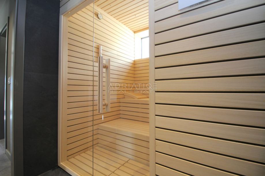Ova je Villa, ukupne površine od 206 četvornih metara raspoređena na dvije etaže. Izgrađena najkvalitetnijim materijalima, te moderno dizajnirana i opremljena, moderne arhitekture, Villa ima četiri spavaće sobe, četiri kupaone, saunu za opuštanje, veliku kuhinju sa blagovaonom, prostrani osunčani dnevni boravak sa kaminom. Svaka prostorija ima klima uređaj, te podno grijanje. Sa terasa pogled se pruža na zelenilo prirode, vinograde i okolne brežuljke. U dvorištu se nalazi bazen okružen udobnim ležaljkama i ljetna kuhinja sa roštiljem. Osigurana je alarmom i video nadzorom, okućnica je ograđena i besprijekorno održavana.