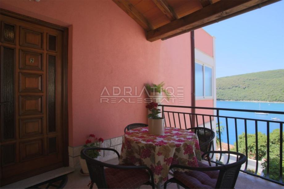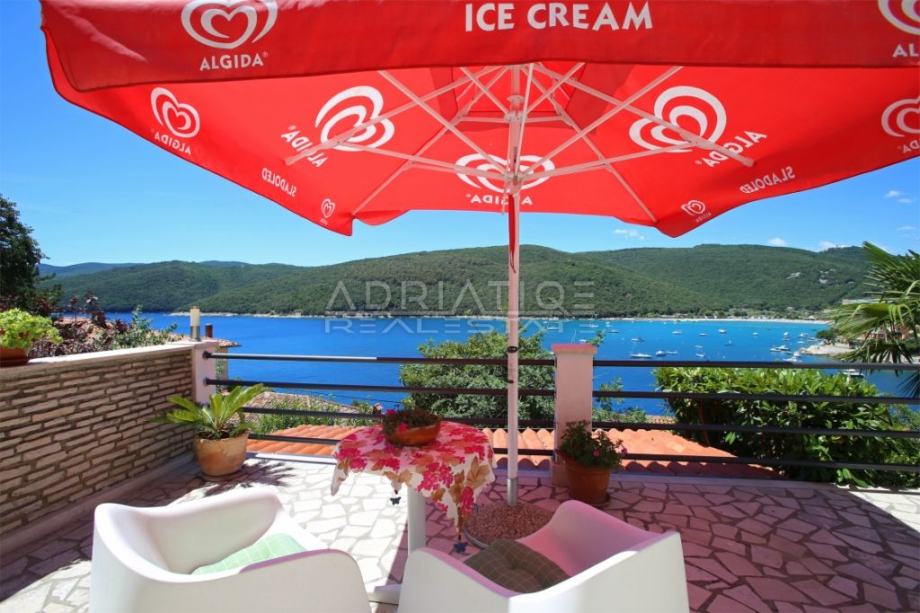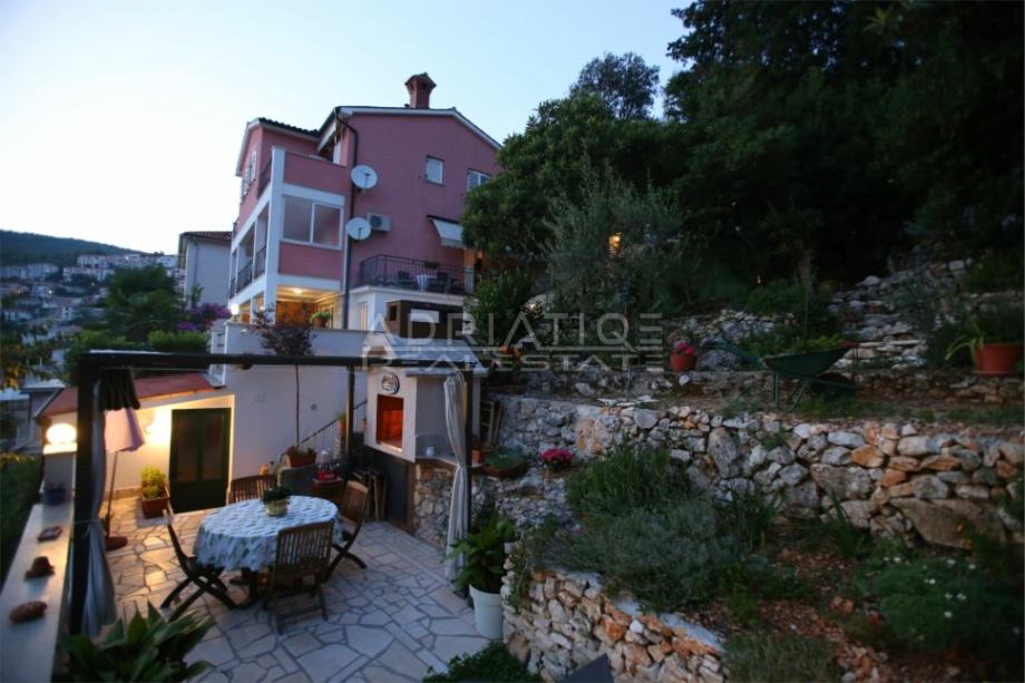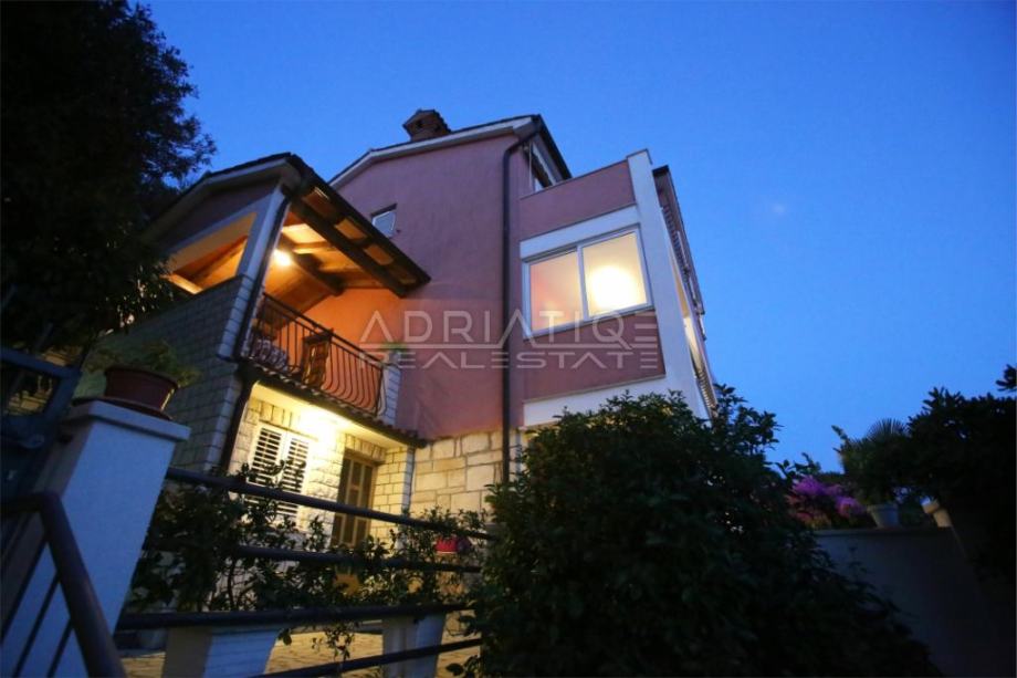 Ova se prekrasna kuća nalazi na prekrasnoj lokaciji, u centru Rapca, udaljena samo 50 metara od mora. Površina kuće od 260 četvornih metara raspoređena je na tri etaže. U prizemlju se nalazi jednosoban apartman i studio. Na prvom katu smješten je dvosobni stan od 90 četvornih metara, te jedan jednosobni apartman. Na vrhu se nalaze još dva jednosobna apartmana. Svi stanovi imaju terase i jedinstven, neometen pogled na more i Rabac. Svi su stanovi namješteni i opremljeni, svaki stan ima klima uređaj. Na okućnici površine od 617 četvornih metara, nalazi se prostorija u kojoj je ljetna kuhinja, kupaona i dnevni boravak, također sa velikom terasom, gdje se nalazi i vanjski roštilj, mjesto idealno za druženje u toplim ljetnim mjesecima. Okućnica je besprijekorno uređena, gdje raste mediteransko bilje i cvijeće. Do kuće nalazi se parkiralište. Ako se spustimo par stepenica niže, dolazimo na rivu, šetnicu i centar sa svim potrebnim sadržajima.