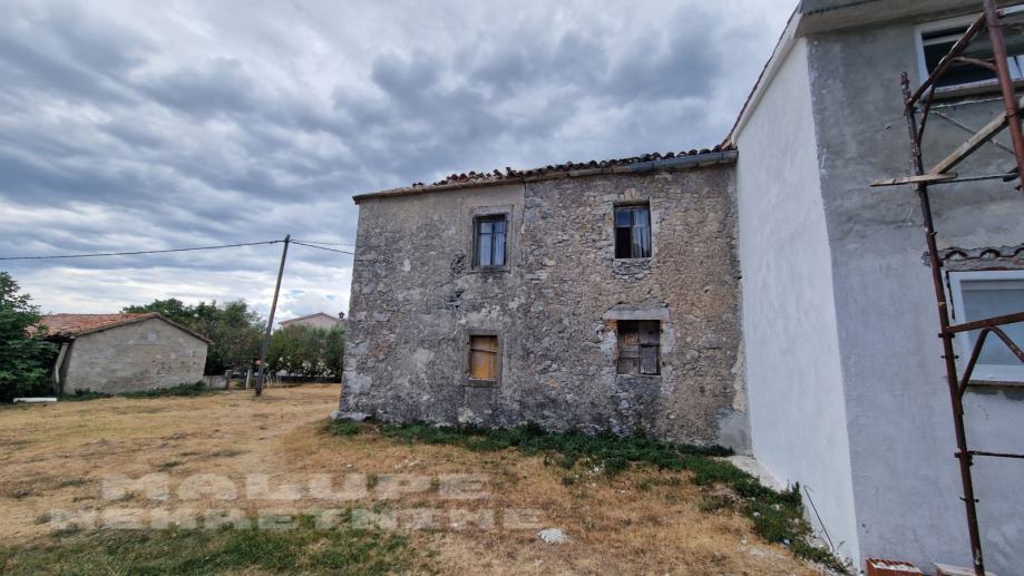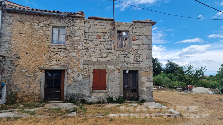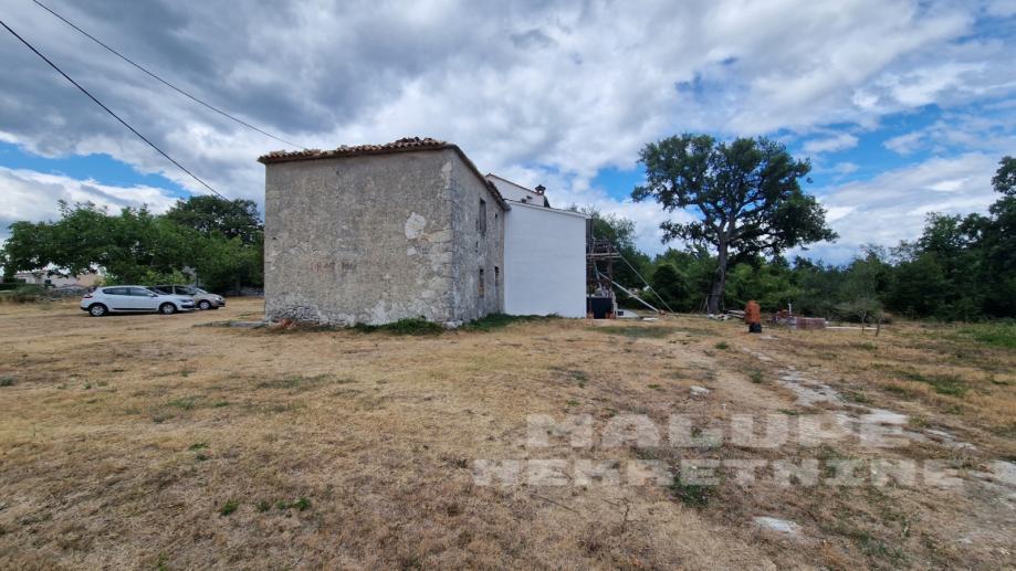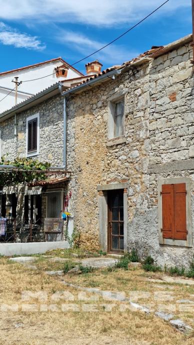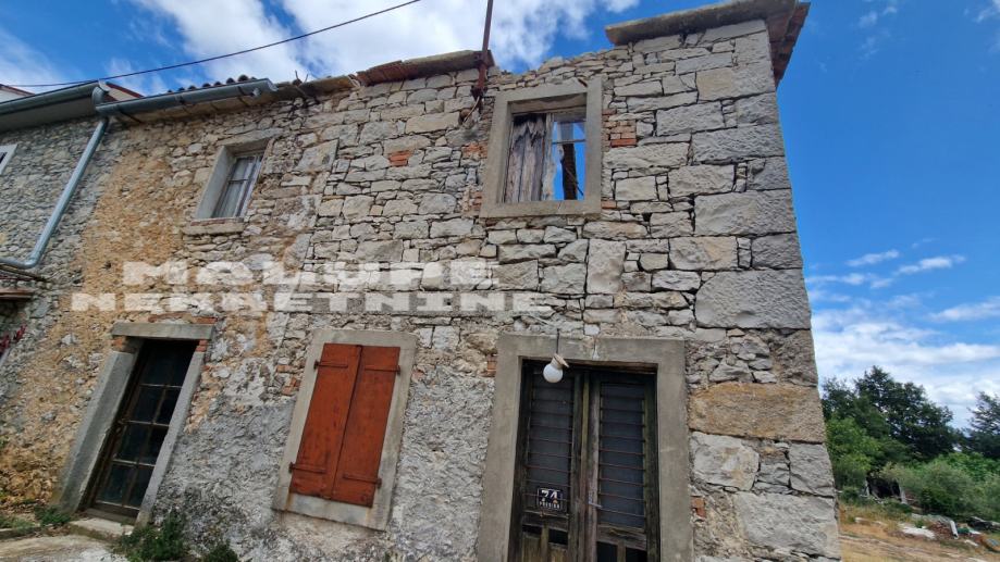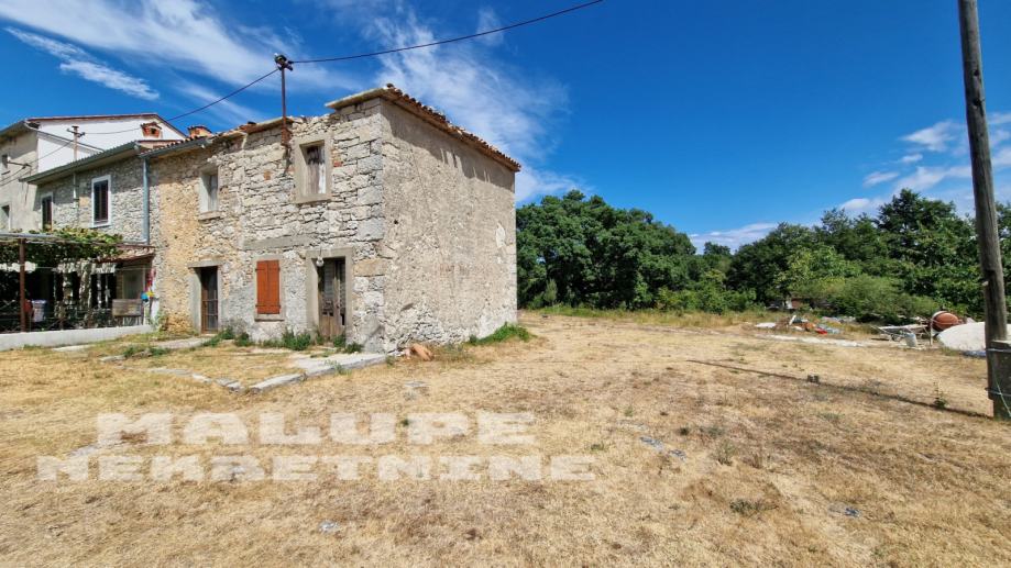 Kamena kuca zadnja u nizu na jako lijepoj lokaciji sa velikom okucnicom nedaleko od Labina. Kuca ima 80m2 st.prostora prikljucena je na struju i vodu te ima septicku, uredan pristup sa mirne ceste. Kuca se nalazi na velikoj okucnici od 2771m2 od kojih je 1500m2 gradjevinsko, a ostatak poljoprivredna parcela pravilnog oblika uredjena i ogradjena suhozidom na kojoj se nalazi pomocni objekat 14m2 koji sluzi kao spremiste. Cisto vlasnistvo uporabna dozvola, ishodovana dozvola i rjesenje projekat ovlastenog arhitekta,komplet dokumentacija za adaptaciju i prosirenje kuce te placene sve komunalije po idejnom projektu planirano 180m2 stambene povrsine. Jako mirna i lijepa lokacija udaljena 2 km od Labina na uzvisenom dijelu sa pogledom na Kvarner 500m nadmorske visine i 3 km od mora. U vlasnisvtu od 17.og stoljeca. Cijena povoljna od 120.000. eura.