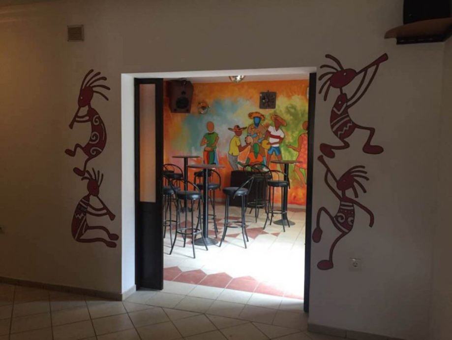 Sastoji se od prednjeg dijela u kojem se nalaze separei i šank unutar kojeg se nalazi malo skladište.
