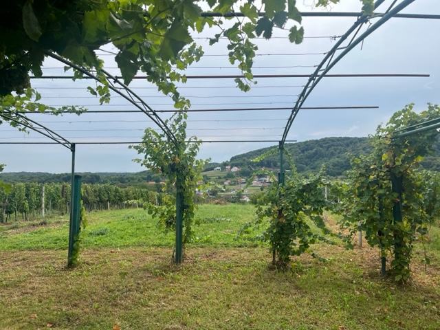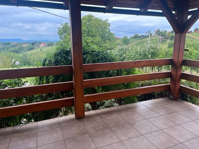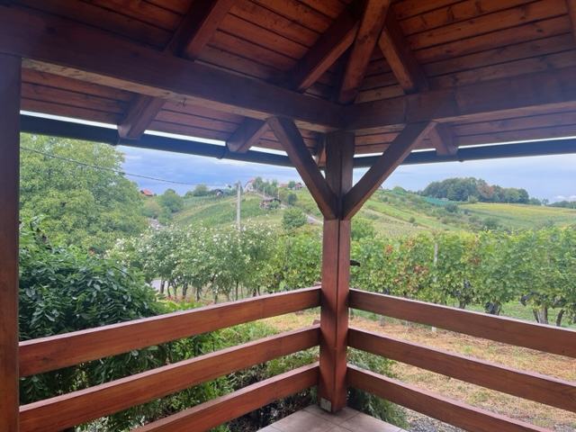 Iz dnevnog prostora izlazi se na prostranu terasu s koje se pruža panoramski pogled na dolinu, obližnju šumu i obližnje vinograde.