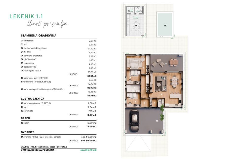 • Prizemnica model Lekenik 1.1. ukupne korisne površine 213,90 m²