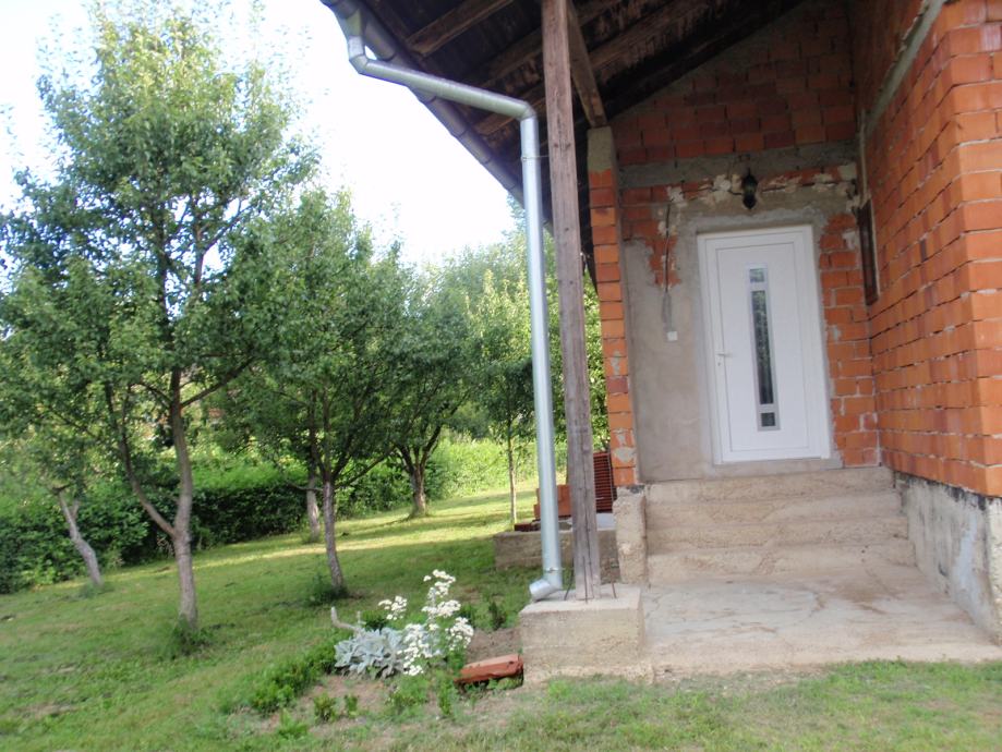 Kuća se nalazi na 1000 m2 uređene i ograđene okućnice sa malim voćnjakom, 200 m od glavne ceste i u blizini Kupe. Sastoji od novouređene donje etaže te gornje roh bau.