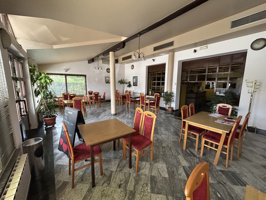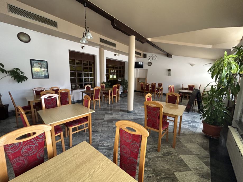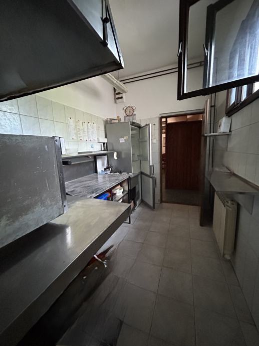 Prizemlje: lokal (trenutno restoran), prostorija sa šankom, dvije prostorije za stolove, profesionalna kuhinja, dodatna prostorija s rashladnim uređajima, muški i ženski sanitarni čvor, prostor za zaposlenike, velika natkrivena terasa te spremište u podrumu.