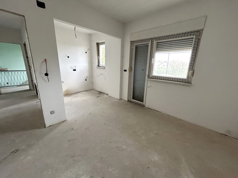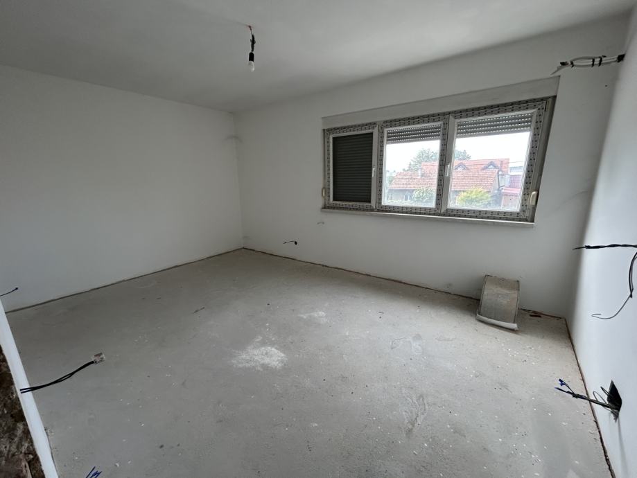 Prvi kat: preuređen do visokog roh-bau-a, s predviđenim prostorijama kupaonica, kuhinja s dnevnim boravkom i dvije sobe. Dnevni boravak ima izlaz na balkon.