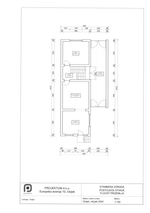 Prodajemo kuću koja se nalazi na lokaciji u Osijeku, Lopudska 34c. Objekt kvalitetne gradnje, dobrog rasporeda, održavan, kvalitetne stolarije, plinskog centralnog grijanja, zapadna i sjeverna strana objekta obložena termo izolacijom, prislonjena istočnom stranom na susjedni objekt. Kuća katnica, bruto površine 225,89 m2, sagrađena na katastarskoj čestici površine 214 m2, uređenog vrta, djelomično popločenog, a drugi dio travnjak. U svrhu korištenja vrta omogućen je pristup u djelu podruma koji služi kao dvorišna ostava. Podrum kuće, neto površine 55,48 m2 sastoji se od 4 prostorije. Prizemlje kuće, neto površine 70,35 m2 sastoji se od ulaznog hodnika, komunikacijskog hodnika, sobe, dnevnog boravka i kuhinje s blagovaonicom. Kat kuće, neto površine 54,52 m2+terasa površine 18,35 m2, tri sobe i kupaonica. Kuća u blizini kampusa, škole, vrtića, sportskog sadržaja, trgovačkih centara i gradskog prijevoza.
