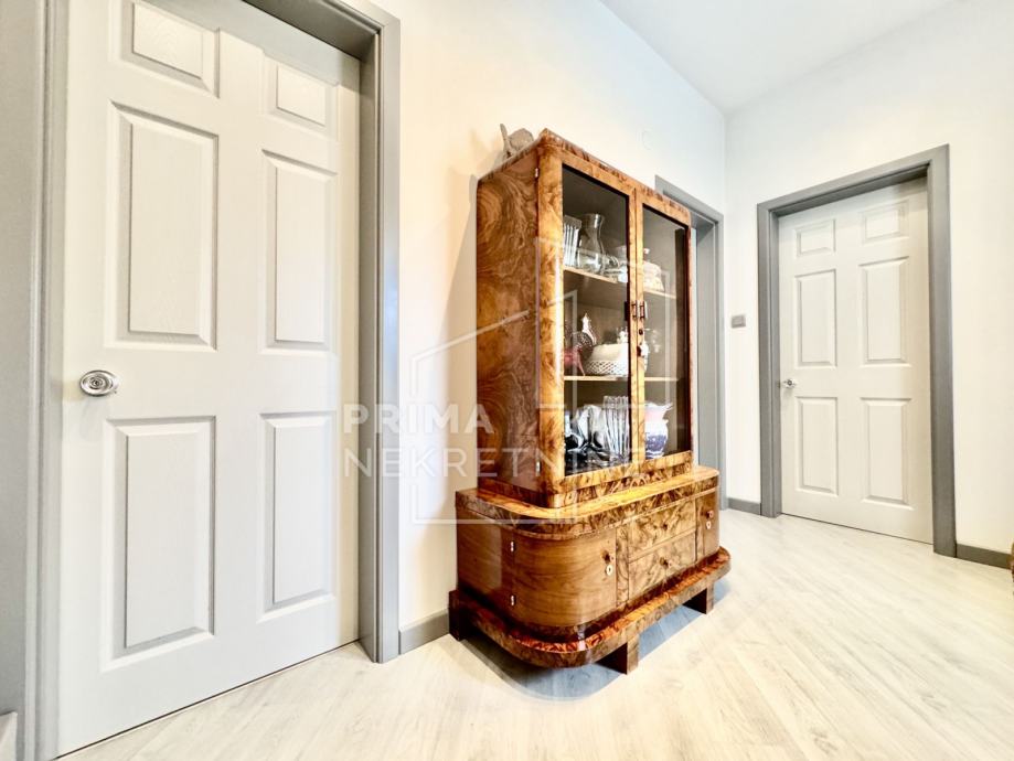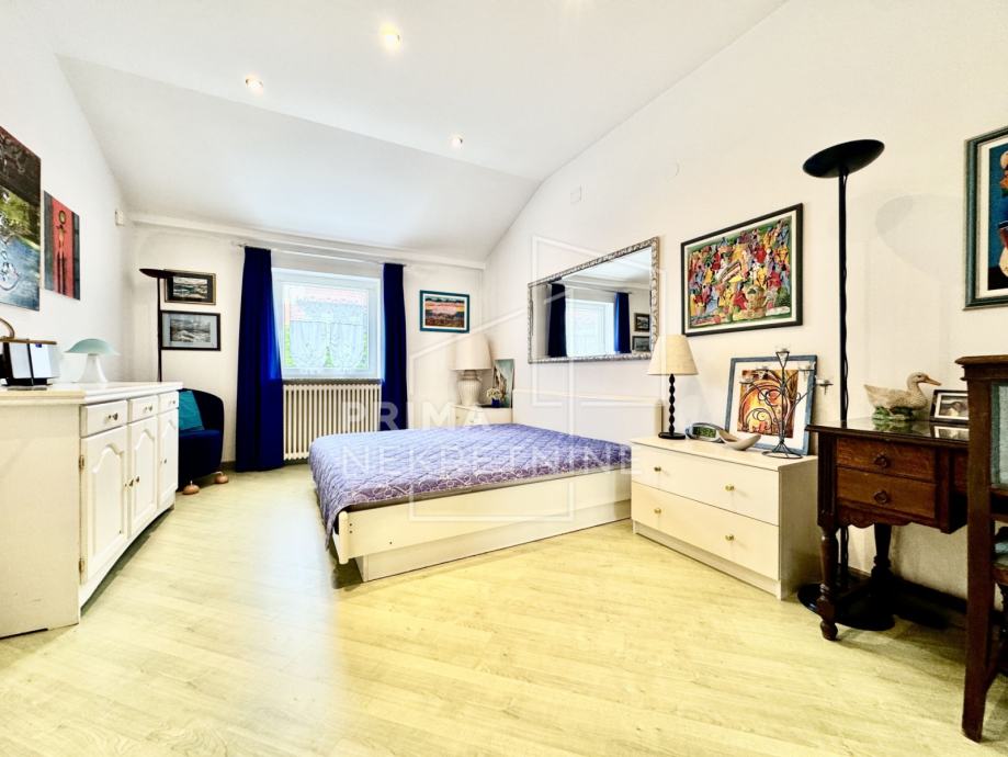 Prodaje se obiteljska kuća površine 250 m² smještena na zemljištu površine 320 m². Nalazi se u drugom redu, povučena od glavne ceste, što osigurava potpuni mir i privatnost. Potpuno renovirana 2002. godine, u izvrsnom je stanju i ne zahtijeva dodatna ulaganja.