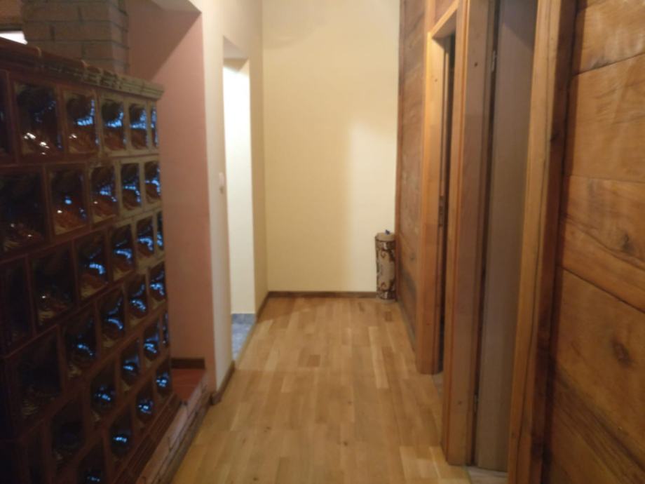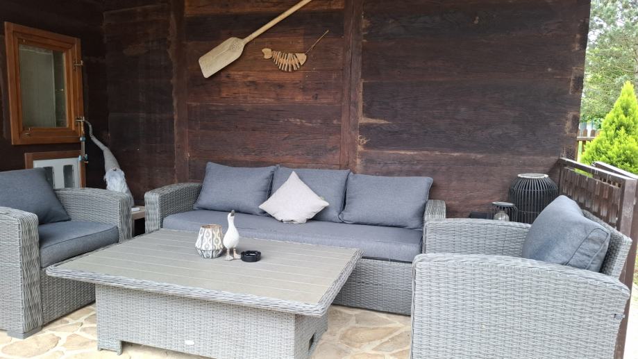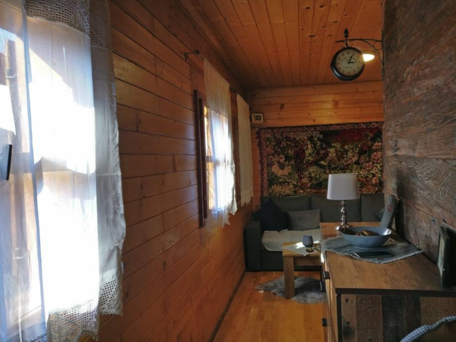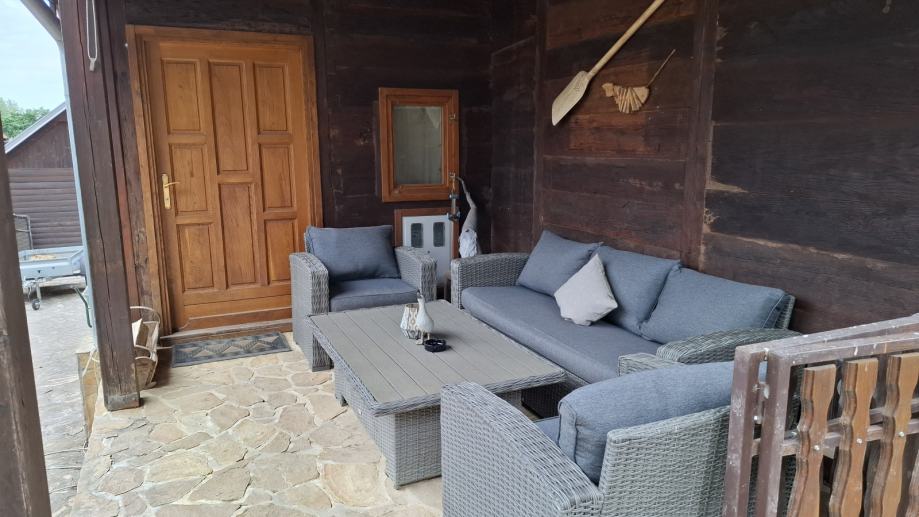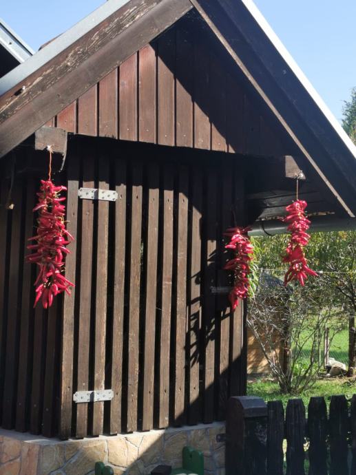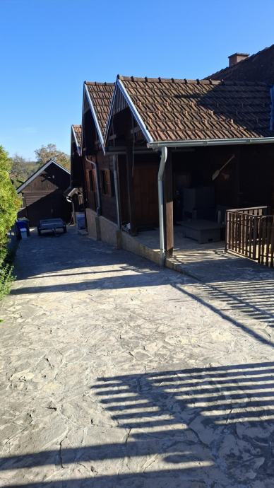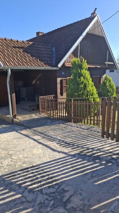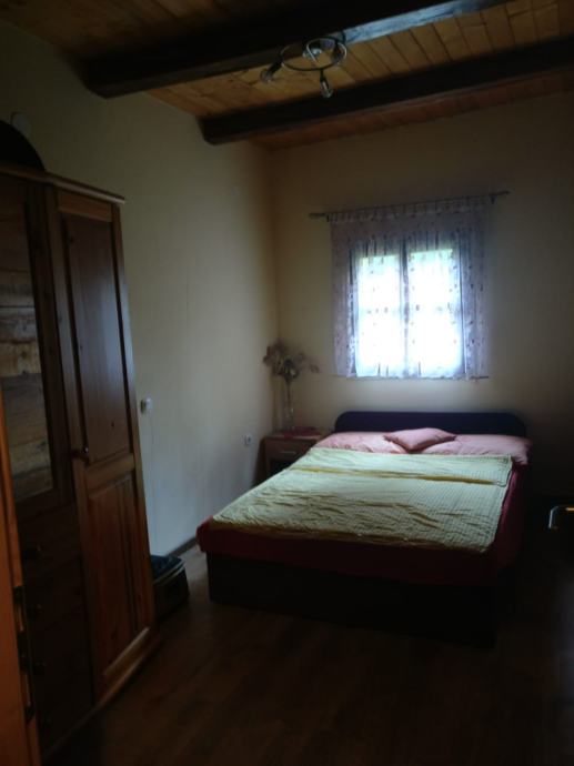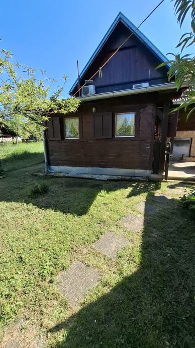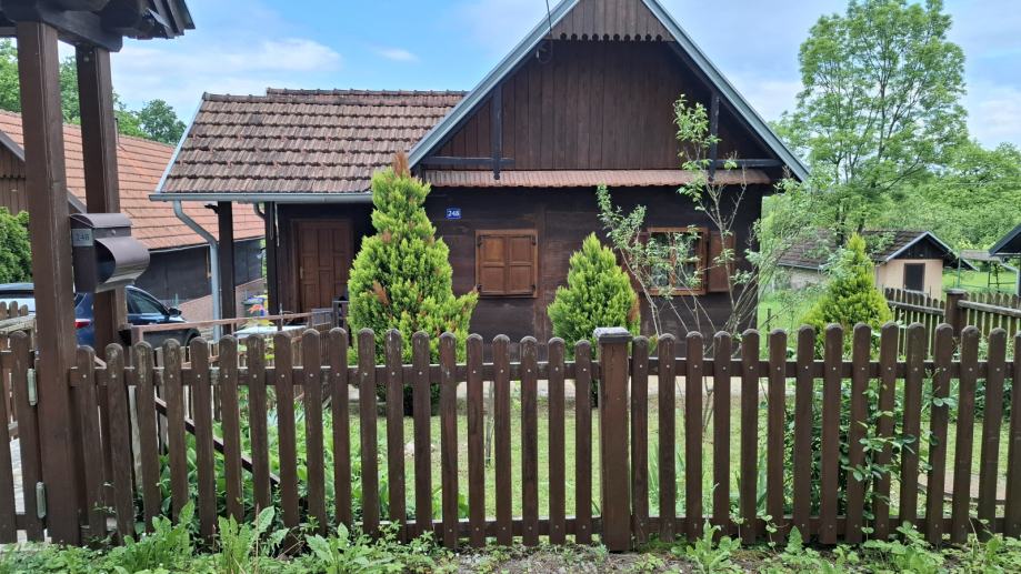 Na prodaju je održavana drvena kuća s prostranim zemlijštem.Na imanju se nalazi garaža s osidanim roštiljem, ljeta kuhinja te dvije vrtne kućice.