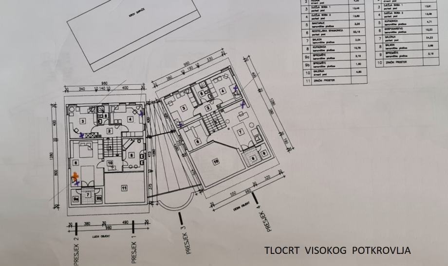 Visoko potkrovlje: tri spavaće sobe, kupaona / wc, balkon