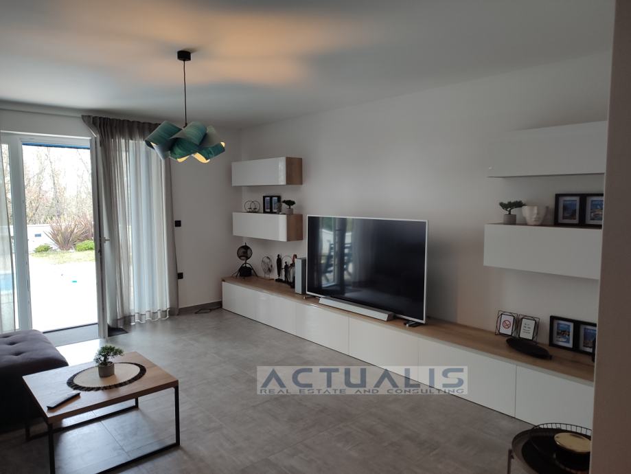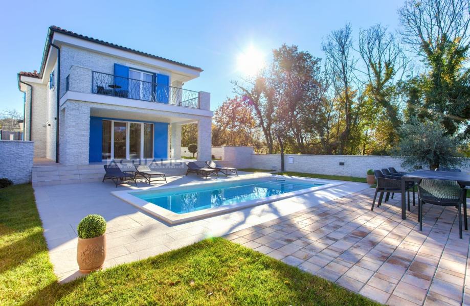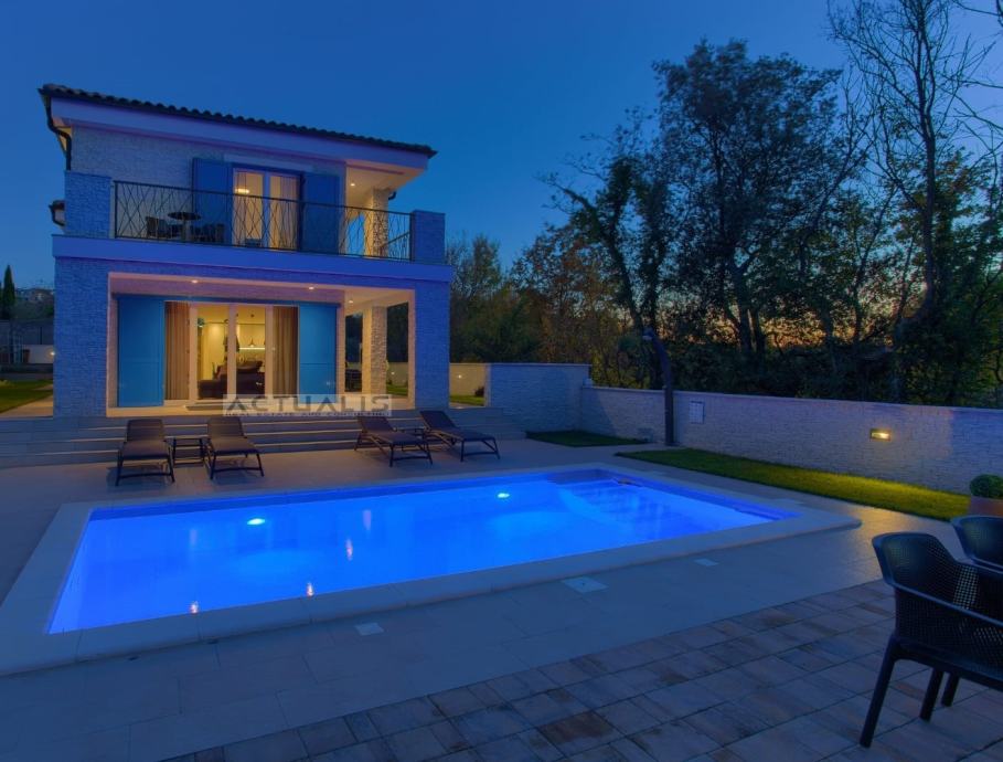 Vila je luksuzno i opremljena i uređena sa svim potrebnim sadržajima gdje se vodilo računa o svim detaljima, lijepo uređena okućnica sa bazenom, vrtnim roštiljem, sjenicom, vanjskim solarnim tušem i automatskim navodnjavanjem lijepo uređene okućnice.
