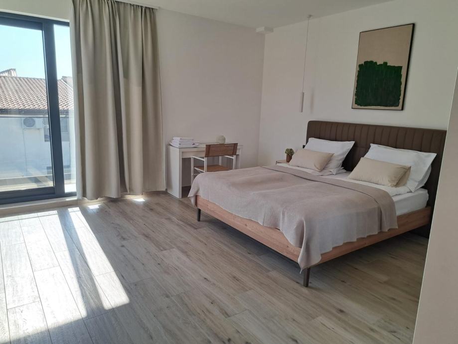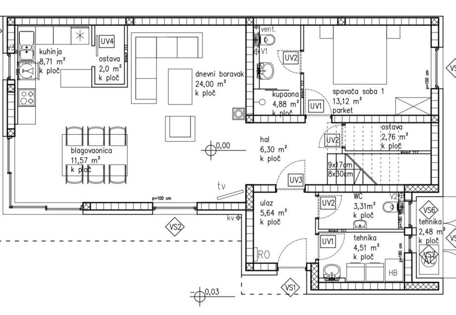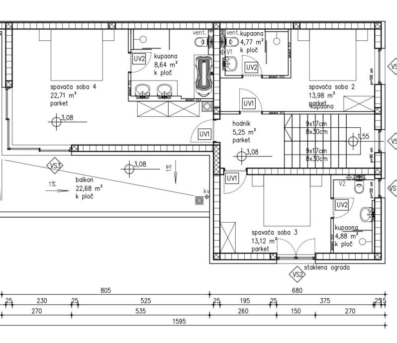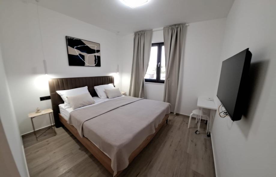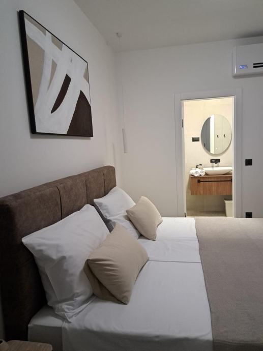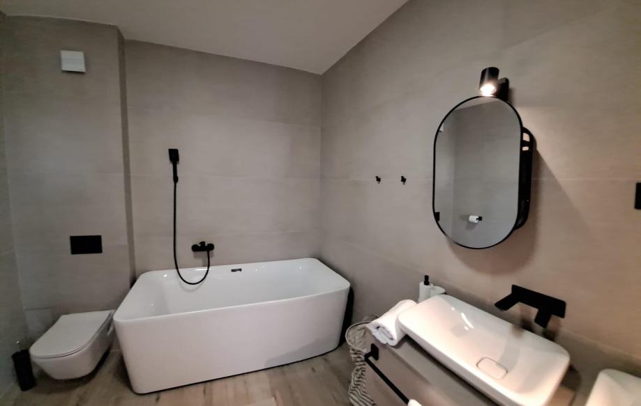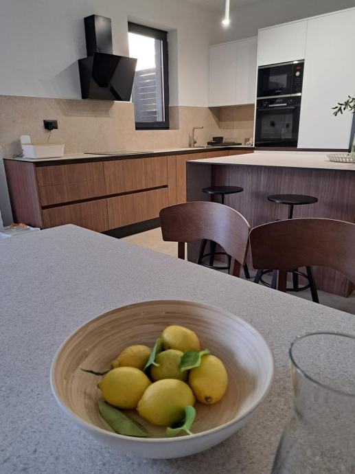 Sanitarni čvorovi opremljeni su vrhunskim armaturama koje izlaze direktno iz zida, dok su podovi i kupaonice obloženi Marazzi keramičkim pločicama. Troslojna antracit stolarija s brončanim efektom i komarnicima pruža izvrsnu izolaciju i moderan izgled, a rubovi kuće prema moru dizajnirani su bez stupova za maksimalnu preglednost.