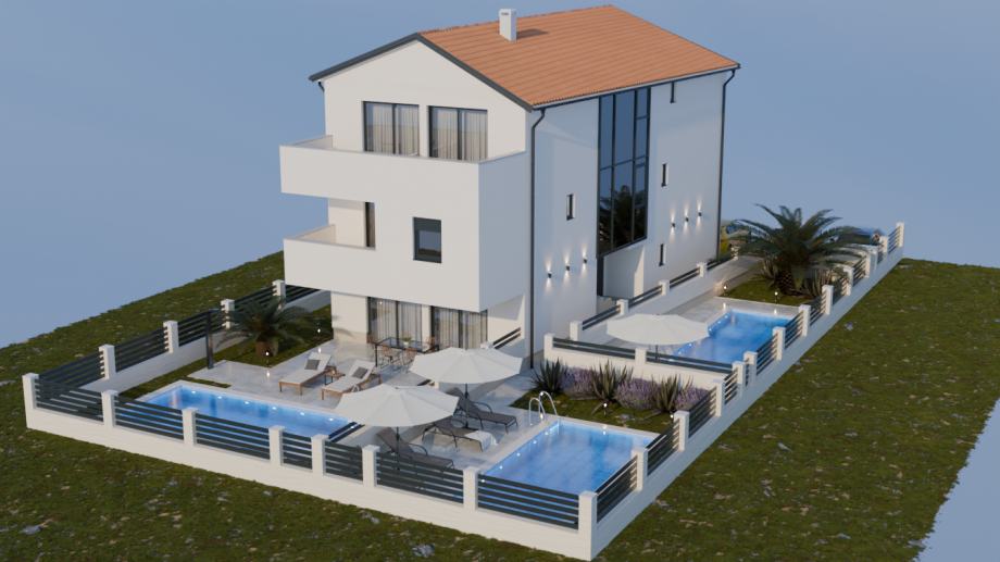 Mogućnost izrade još dva bazena,tako da svaki stan ima svoj bazen.
