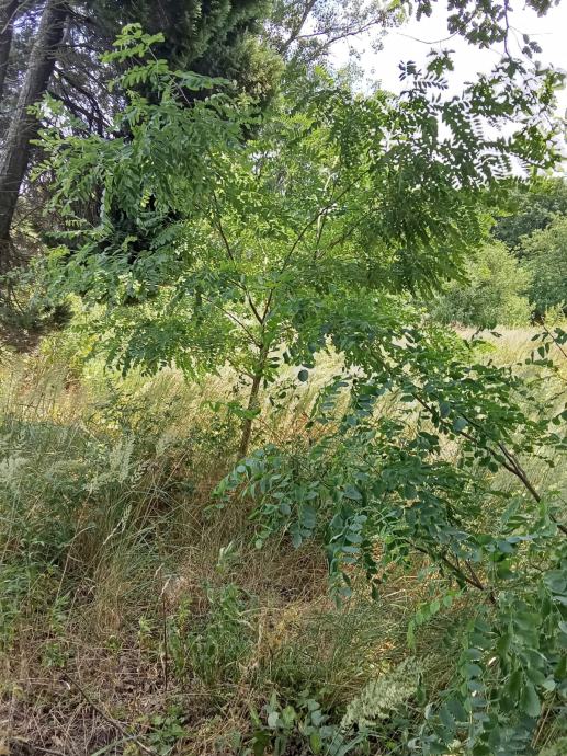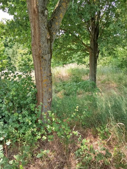 Zemljište je većih dimenzija i pruža brojne mogućnosti uređenja. Donji dio parcele, otprilike jedna trećina, zarastao je šumskim raslinjem, dok oko kućice nema guste šume. Na placu se nalaze velike voćke (trešnja, šljive, kesten) te lijepi, veliki hrastovi koji stvaraju ugodnu prirodnu hladovinu i daju posebnu atmosferu imanju. Od kućice prema gornjoj pristupnoj cesti teren nije toliko zarastao, što omogućava lakši pristup i buduće uređivanje prostora.