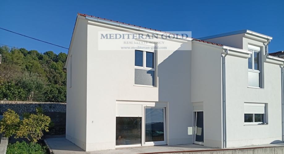 Marina, kuća u izgradnji, gradnja po kvalitetnom arhitektonskom projektu, na izuzetnoj lokaciji pogodnoj za obiteljski život ili kao investicija. Kuća poseduje važeću građevinsku dozvolu sa zakonom propisanom dokumentacijom. Funkcionalan raspored prostorija po svim standardima gradnje. Sastoji se od prizemlja i kata, ukupne stambene površine od 115m2 i zemljišta od 315m2. Od mora udaljeno 200m. Vanjski dio zgrade i okoliš su u potpunosti uređeni, mogućnost završetka objekta po dogovoru. Idealna prilika da prilagodite interijer svojim željama.