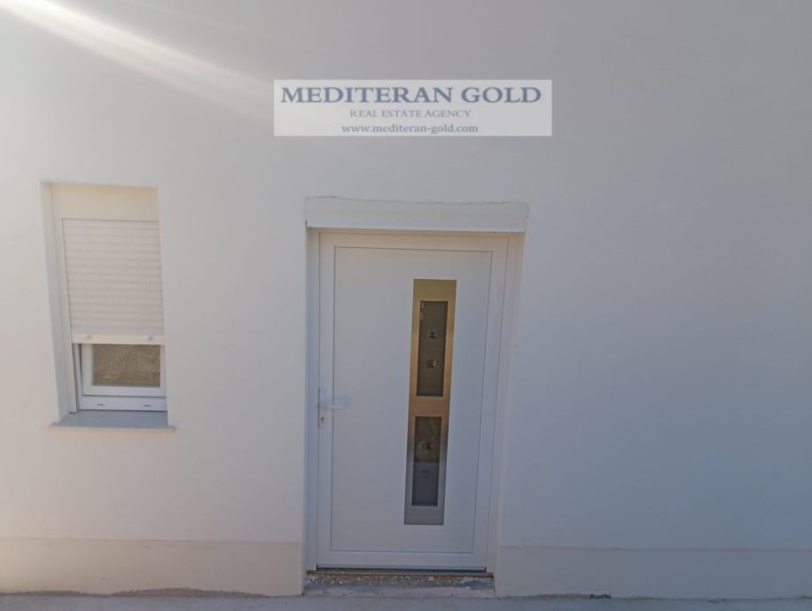 Marina, kuća u izgradnji, gradnja po kvalitetnom arhitektonskom projektu, na izuzetnoj lokaciji pogodnoj za obiteljski život ili kao investicija. Kuća poseduje važeću građevinsku dozvolu sa zakonom propisanom dokumentacijom. Funkcionalan raspored prostorija po svim standardima gradnje. Sastoji se od prizemlja i kata, ukupne stambene površine od 115m2 (niski roh-bau) zemljište od 315m2. Od mora udaljeno 200m. Vanjski dio zgrade i okoliš su u potpunosti uređeni, mogućnost završetka objekta po dogovoru. Idealna prilika da prilagodite interijer svojim željama.
