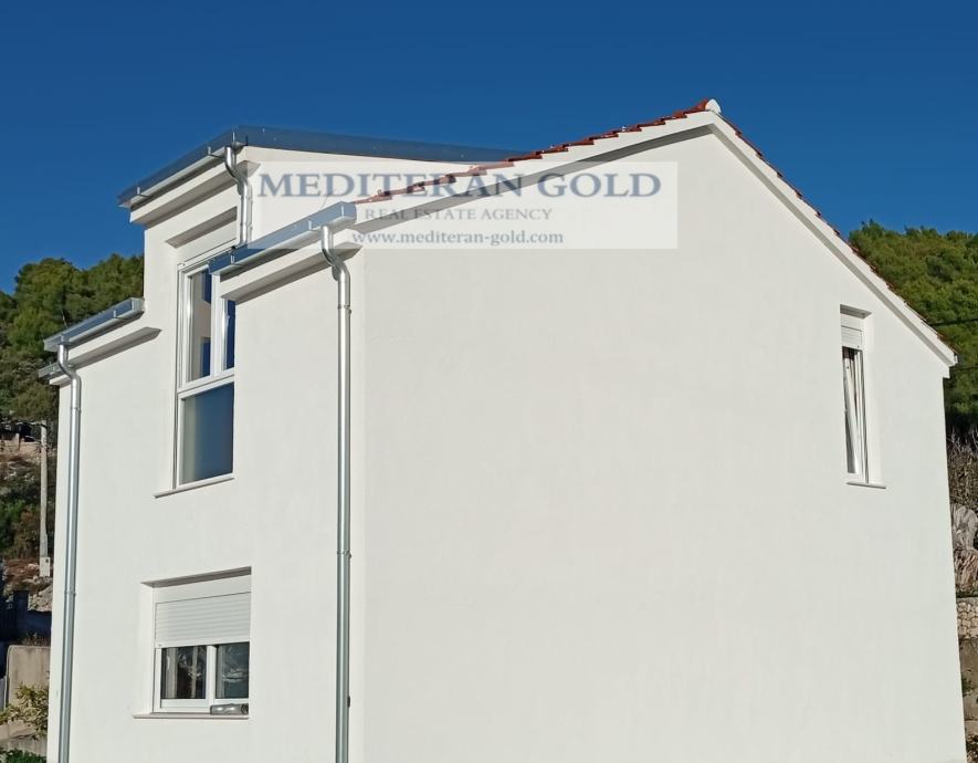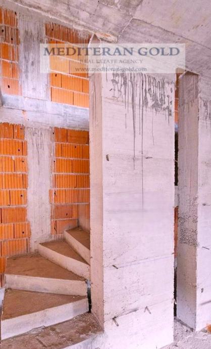 Marina, kuća u izgradnji, gradnja po kvalitetnom arhitektonskom projektu, na izuzetnoj lokaciji pogodnoj za obiteljski život ili kao investicija. Kuća poseduje važeću građevinsku dozvolu sa zakonom propisanom dokumentacijom. Funkcionalan raspored prostorija po svim standardima gradnje. Sastoji se od prizemlja i kata, ukupne stambene površine od 115m2 (niski roh-bau) zemljište od 315m2. Od mora udaljeno 200m. Vanjski dio zgrade i okoliš su u potpunosti uređeni, mogućnost završetka objekta po dogovoru. Idealna prilika da prilagodite interijer svojim željama.