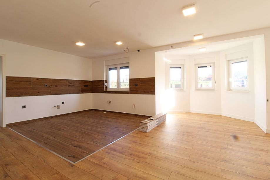 Grijanje je plinsko( podno) centralno etažno, ugrađena je Pvc troslojna stolarija, laminat I klase kao i keramika I klase te unutarnja stolarija.