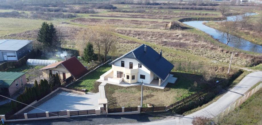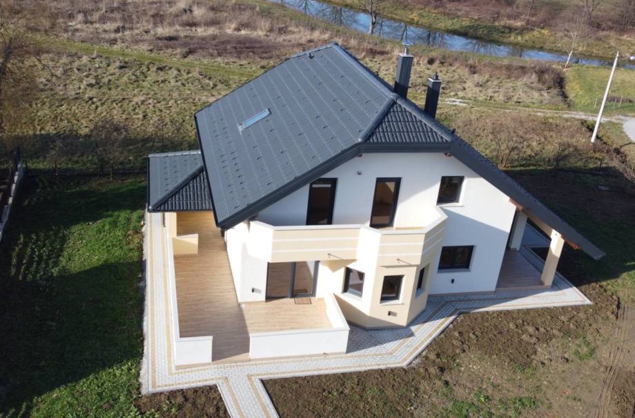 Kuća je u potpunosti uređena sa uređenim dvorištem i ogradom na daljinsko upravljanje.