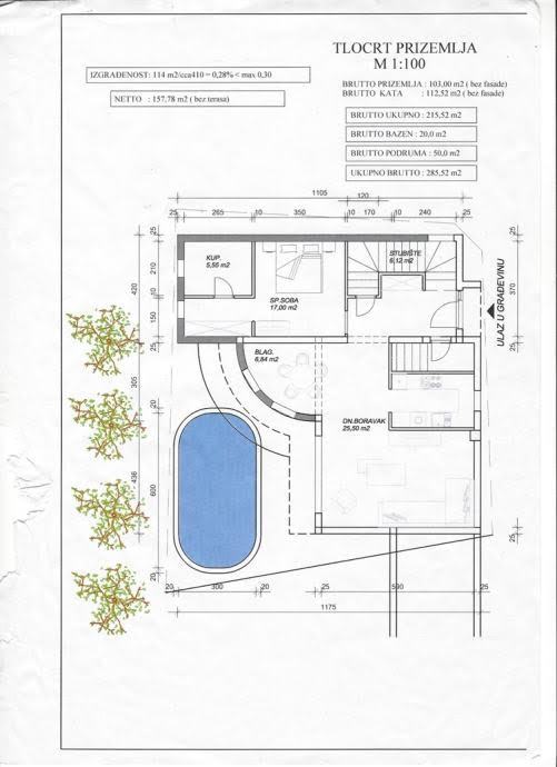 PRIZEMLJE: VELIČINE 103,22 m2 (pogledaj TLOCRT)