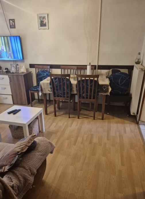 Prizemlje: sastoji se od 2 jednosobna stana sa dnevnim boravkom. Drugi stan trenutno nam služi za najam te ga je moguće opet vrlo jednostavno spojiti sa stanom uz njega te tako imati prizemlje sa db+kuhinjom+wc-om i kupaonicom sa kadom i 3 spavaće sobe. Ili se može nastaviti iznajmljivati i imati dodatan prihod.