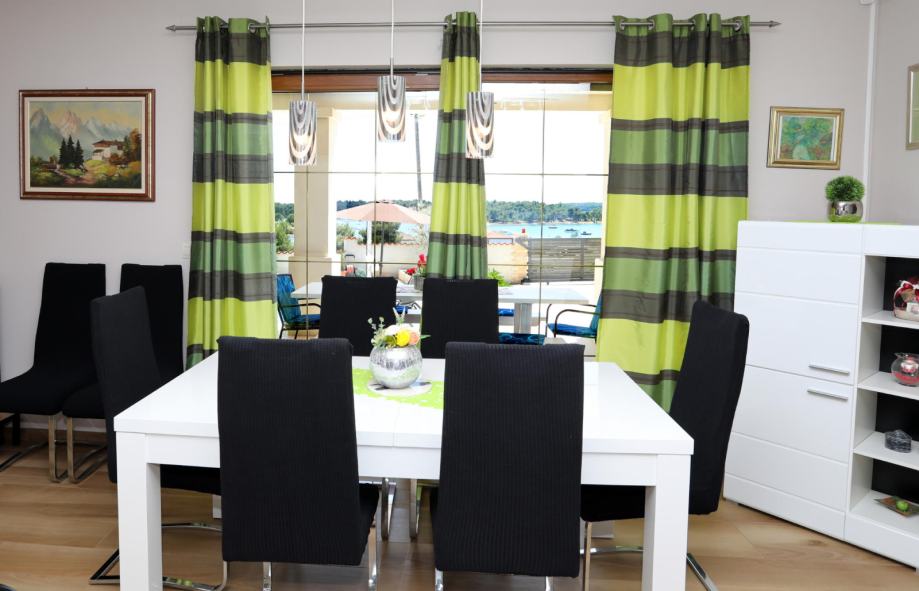 Unutarnje stepenice vode nas na prvi kat gdje su smještene 3 spavaće sobe. Sa jedne strane nalazi se odvojeno, jedna velika spavača soba, sa vlastitom kupaonom sa kadom, sa vlastitim izlazom na veliku terasu. U drugom dijelu se nalaze u odvojenom prostoru dvije spavače sobe, sa jednom velikom kupaonom sa tušem. Jedna soba ima izlaz na vlastiti balkon. Iz hodnika se isto tako može izači na veliku terasu. Sve sobe imaju pogled na more!