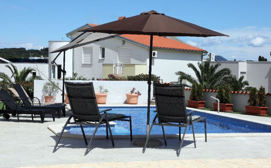 Vila također ima vlastiti uređeni i ograđeni vrt s bazenom površine 48 m2 i sunčalištem, te 5 parkirna mjesta.
