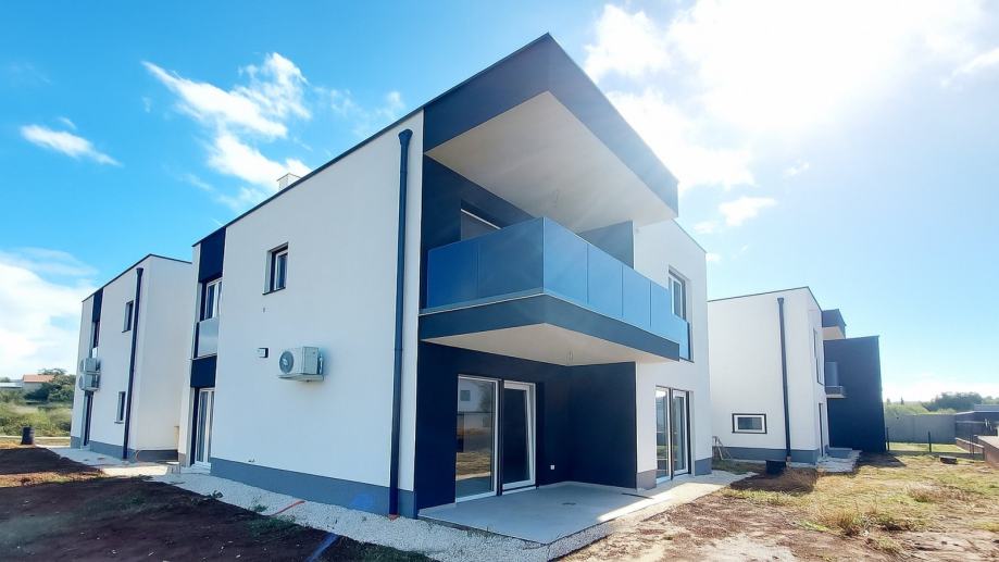 Unutarnje stubište vodi na kat gdje su smještene 3 spavaće sobe, svaka s kupaonicom, te balkon. Kuća je opremljena za potrebe grijanja i hlađenja sa klima uređajem, pvc stolarijom, te 2 parkirna mjesta. Idealna za obitelj ili najam kao kuća za odmor s privatnim bazenom koji jw moguće napraviti ali bazen nije u cijeni kuće.
