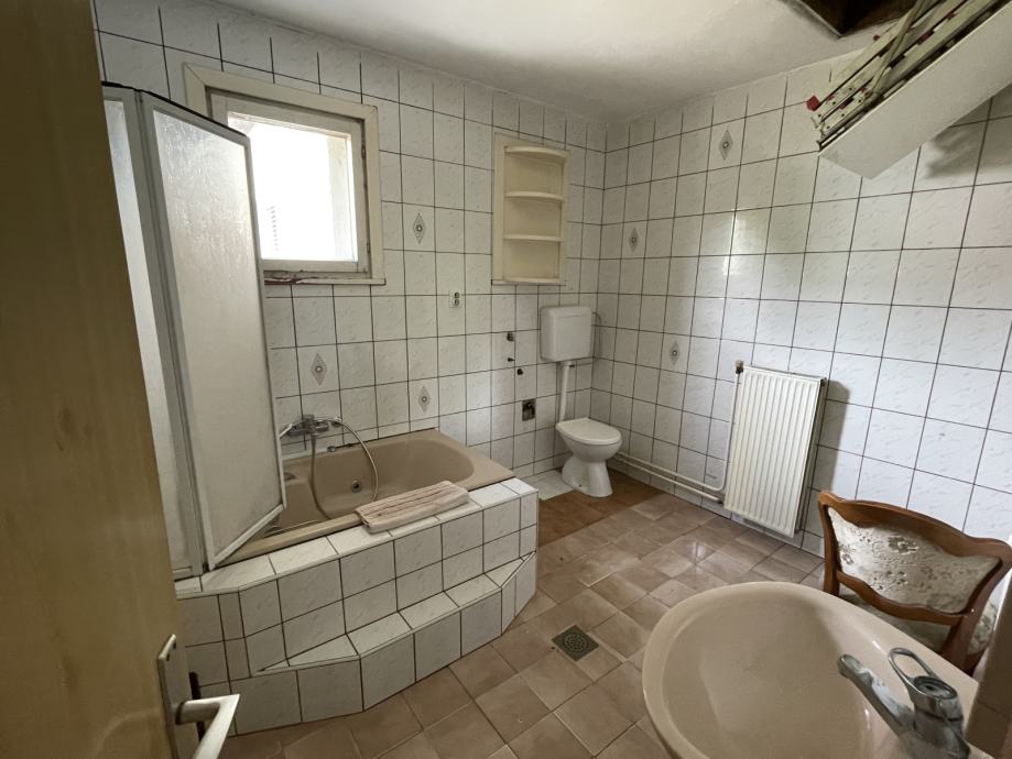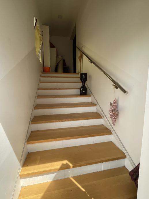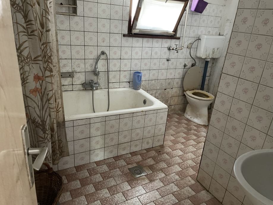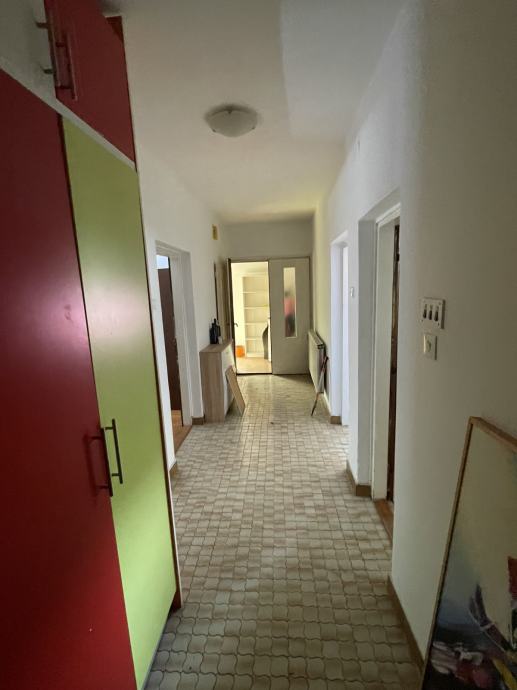 Prodaje se kuća za renoviranje od cca 260 m2 sastoji se od prizemlja i kata odnosno dva odvojena stana. U prizemlju se nalazi kuhinja, kupaonica, dvije sobe, hodnik, dvije garaže i spremište. Na katu se nalazi kuhinja, hodnik, kupaonica, 5 soba i terasa. Priključci: struja, voda, plin i kanalizacija. Kuća je građena 1974 godine, dogranja kuće bila je 1986 godine. Krovište na kući je promjenjeno. Vlasništvo čisto. Tereta nema.
